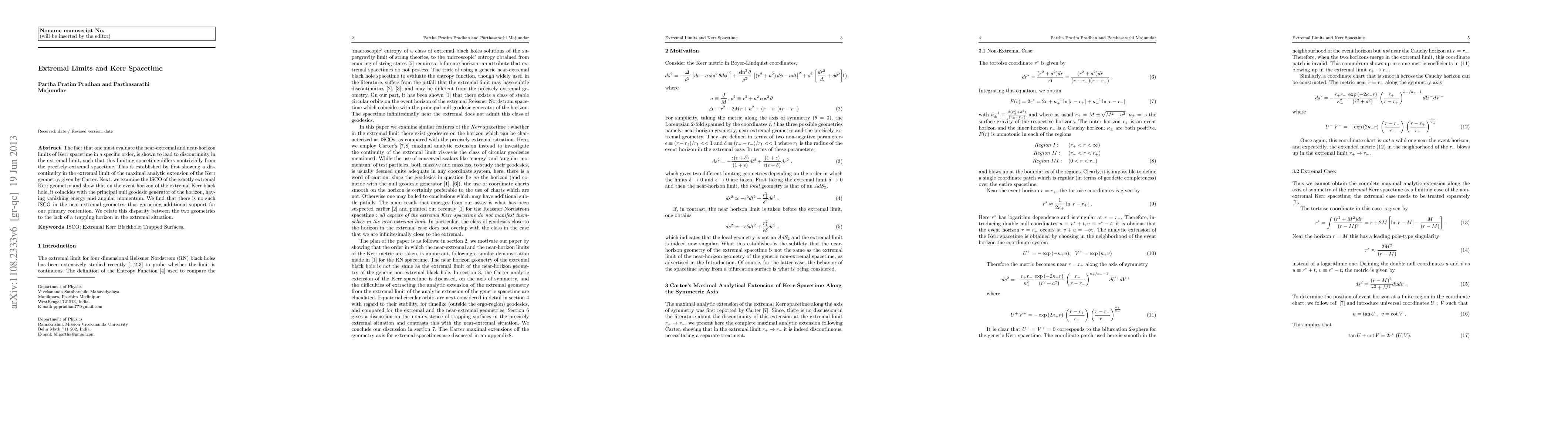 This paper demonstrates a discontinuity in the extremal limit of Kerr spacetime when evaluated in a specific order, showing that the limiting space-time differs from the precisely extremal spacetime. It finds no Innermost Stable Circular Orbit (ISCO) in the near-extremal geometry, supporting the notion of a lack of trapping horizon in the extremal case.