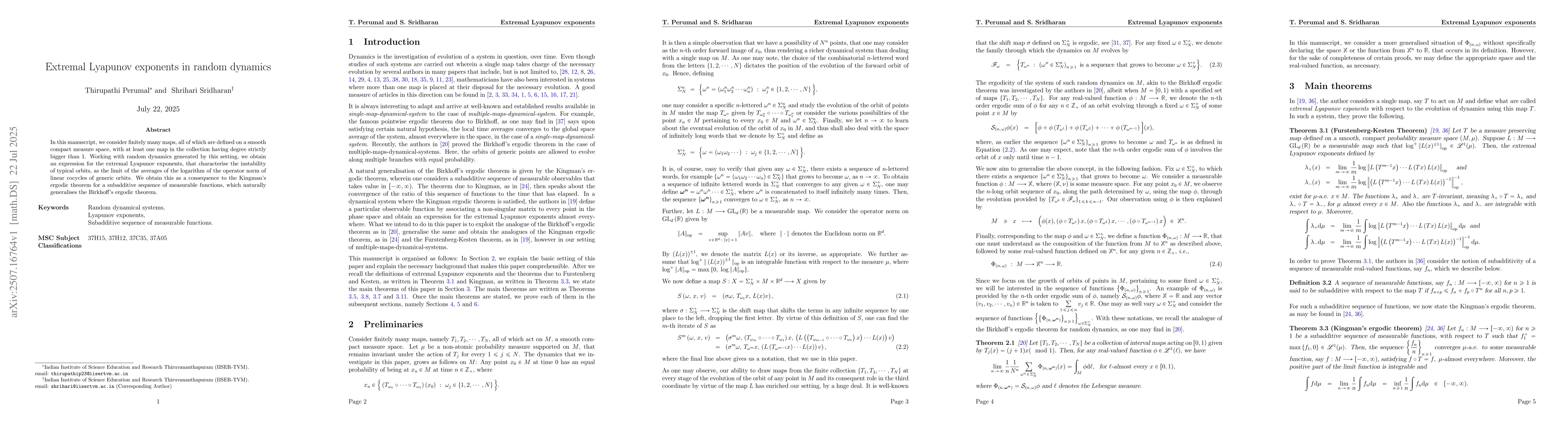 The paper presents a novel application of Kingman's ergodic theorem to derive extremal Lyapunov exponents in random dynamics, generalizing Birkhoff's ergodic theorem.