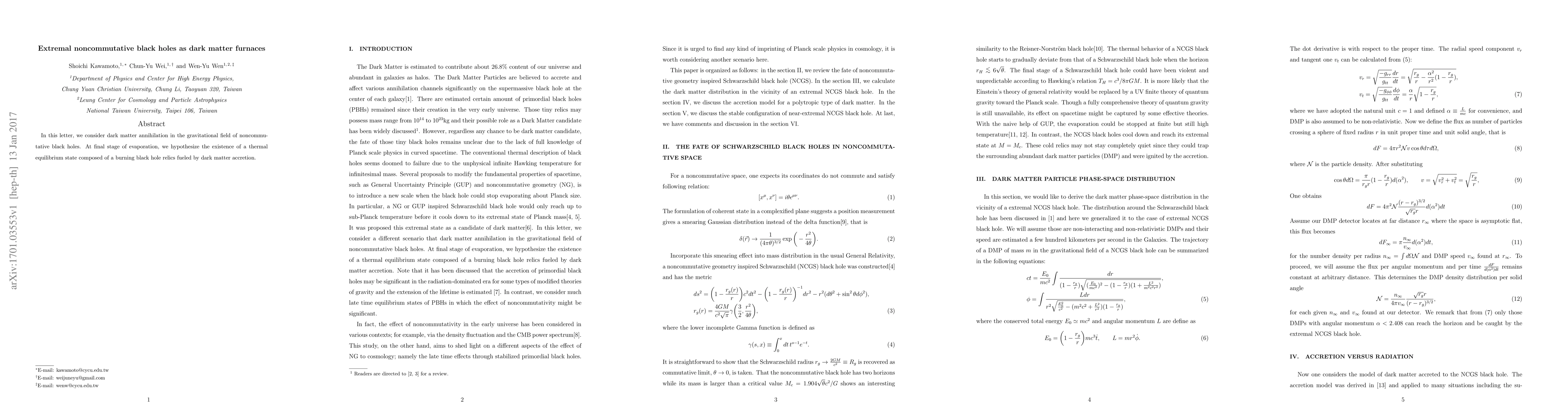 In this letter, we consider dark matter annihilation in the gravitational field of noncommutative black holes. At final stage of evaporation, we hypothesize the existence of a thermal equilibrium state composed of a burning black hole relics fueled by dark matter accretion.