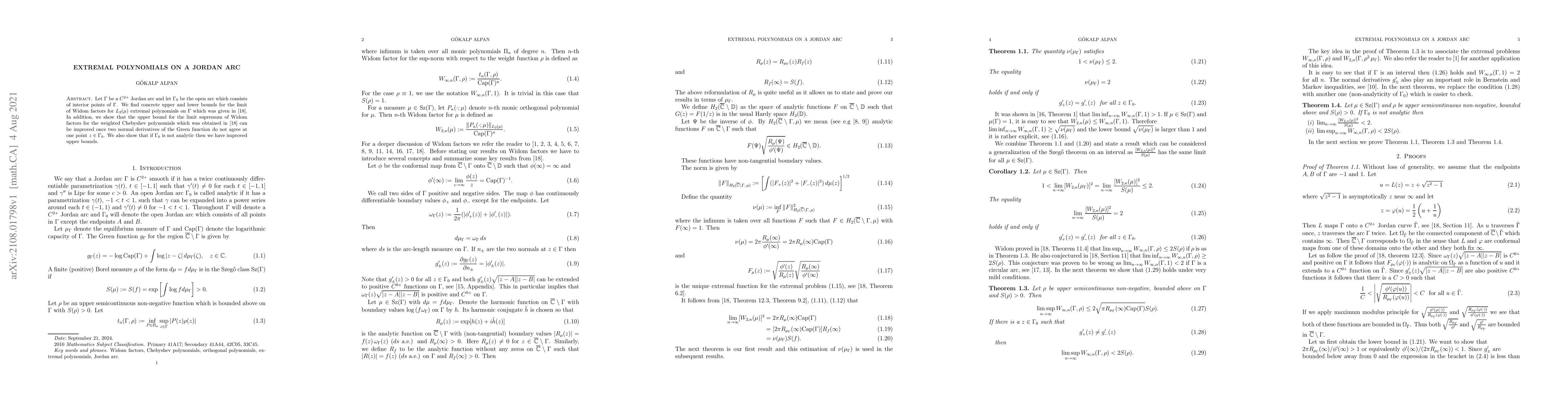 Let $\Gamma$ be a $C^{2+}$ Jordan arc and let $\Gamma_0$ be the open arc which consists of interior points of $\Gamma$. We find concrete upper and lower bounds for the limit of Widom factors for $L_2(\mu)$ extremal polynomials on $\Gamma$ which was given in [18]. In addition, we show that the upper bound for the limit supremum of Widom factors for the weighted Chebyshev polynomials which was obtained in [18] can be improved once two normal derivatives of the Green function do not agree at one point $z\in \Gamma_0$. We also show that if $\Gamma_0$ is not analytic then we have improved upper bounds.