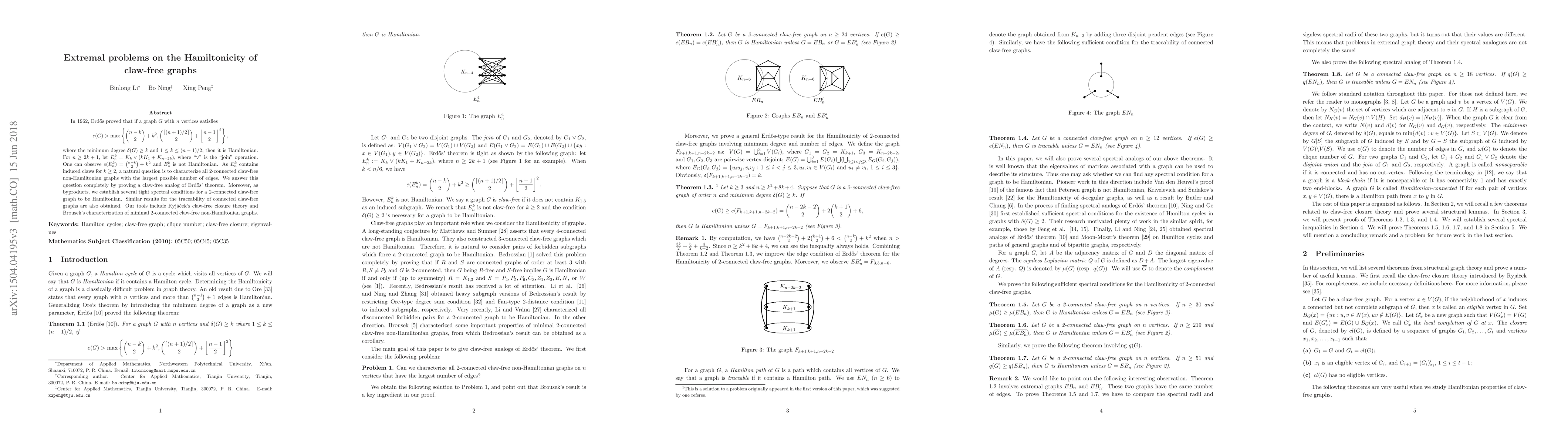This research contributes to the extremal graph theory by addressing Hamiltonicity in claw-free graphs, which are important classes of graphs with numerous applications in various fields, including social networks and chemical compounds.