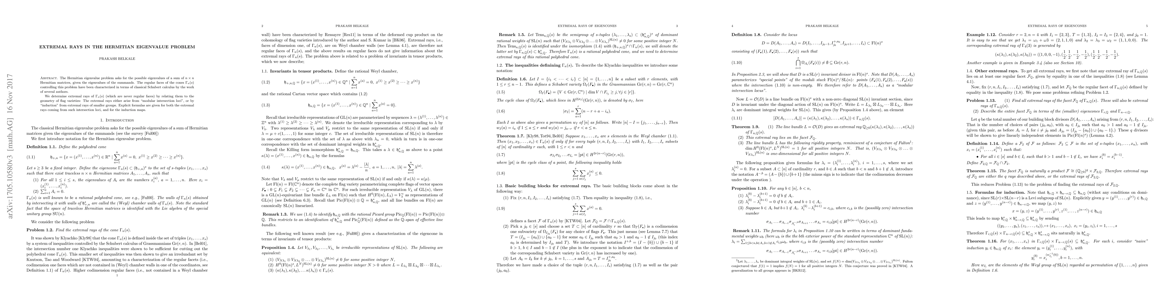 This paper identifies extremal rays in the Hermitian eigenvalue problem, characterizing them through connections to the geometry of flag varieties. It provides explicit formulas for these rays, distinguishing those arising from modular intersection loci and those induced from smaller group structures.