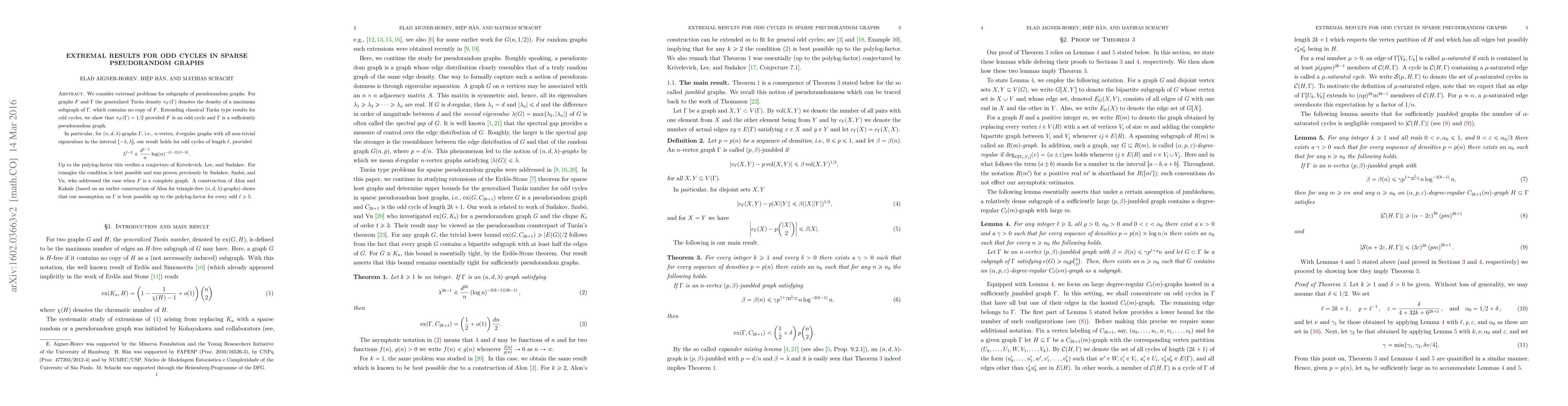 This paper extends classical Turán-type results to pseudorandom graphs, proving that the maximum density of a subgraph that avoids odd cycles in sufficiently pseudorandom $(n,d,\lambda)$-graphs is $1/2$. The condition for this result is shown to be asymptotically optimal up to polylogarithmic factors, verifying a conjecture for odd cycles, with constructions demonstrating the tightness of the assumption for odd lengths starting from 5.