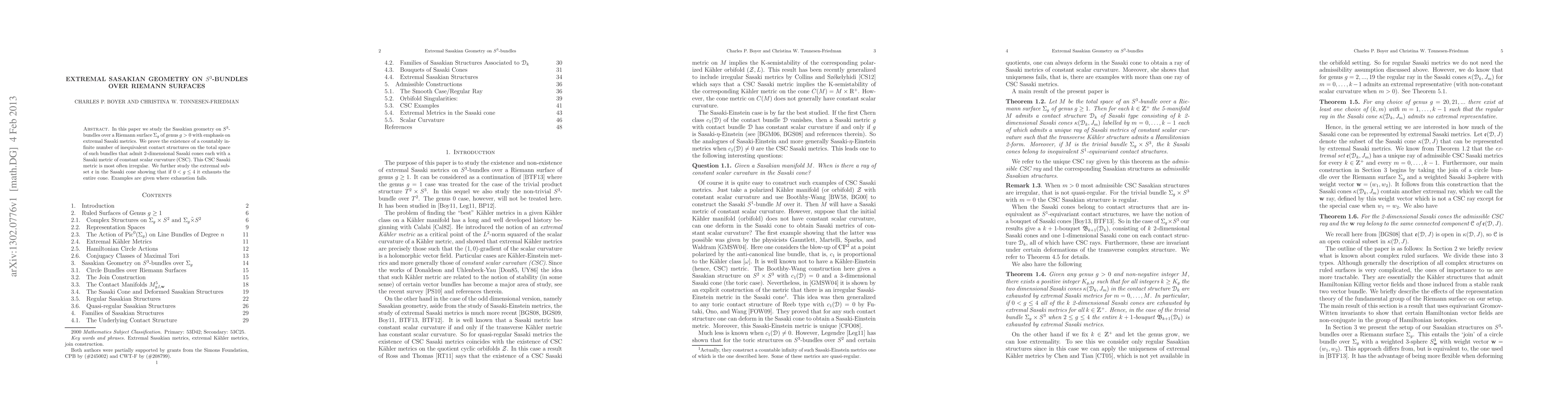surface of genus g>0 with emphasis on extremal Sasaki metrics. We prove the