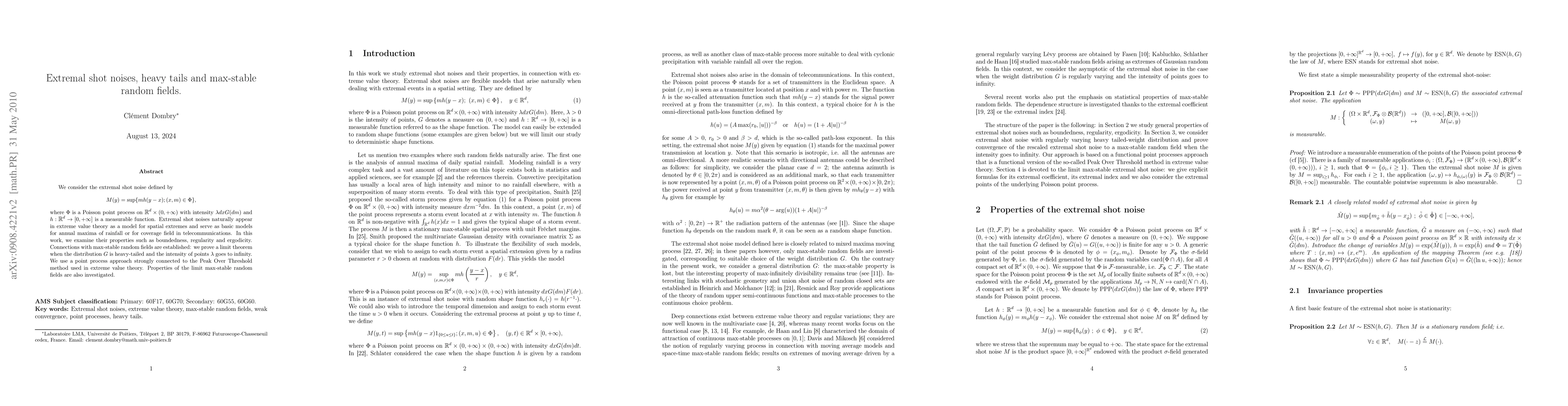The paper establishes a link between extremal shot noises and max-stable random fields, providing a theoretical foundation for understanding spatial extremes through a point process approach.
