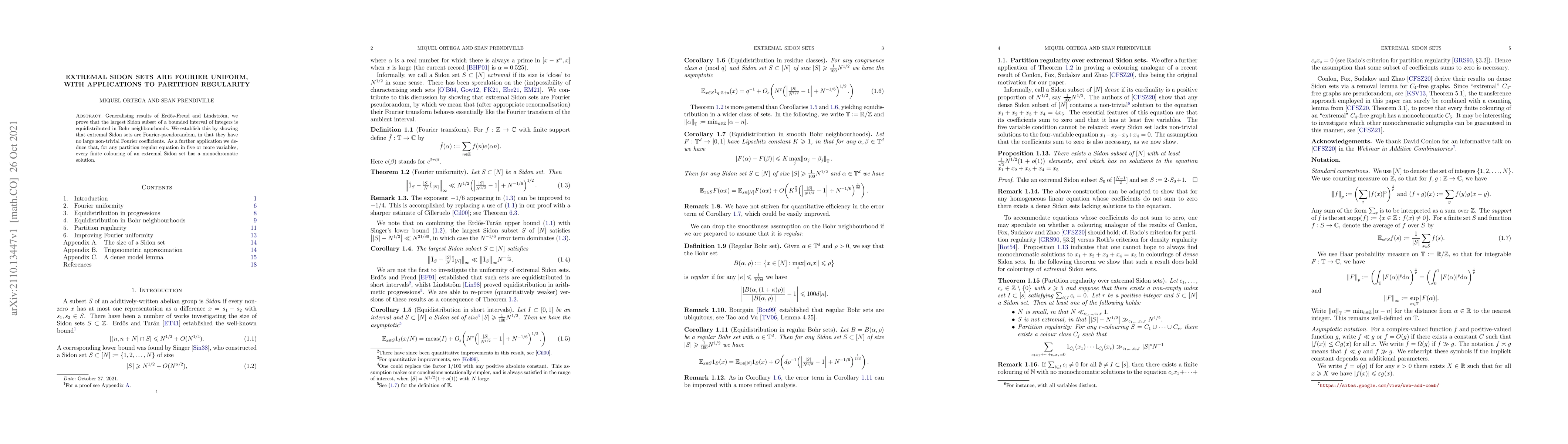 Generalising results of Erd\H{o}s-Freud and Lindstr\"om, we prove that the largest Sidon subset of a bounded interval of integers is equidistributed in Bohr neighbourhoods. We establish this by showing that extremal Sidon sets are Fourier-pseudorandom, in that they have no large non-trivial Fourier coefficients. As a further application we deduce that, for any partition regular equation in five or more variables, every finite colouring of an extremal Sidon set has a monochromatic solution.