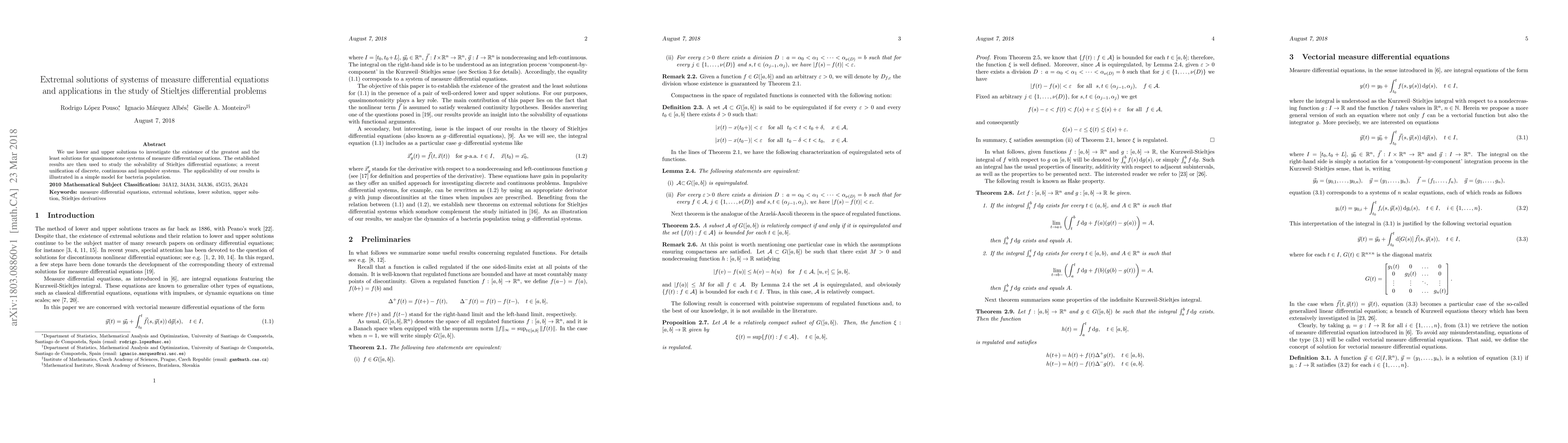 This paper explores the existence of extremal solutions for quasimonotone systems of measure differential equations using lower and upper solutions, and applies these findings to study the solvability of Stieltjes differential equations, demonstrating the method with a bacteria population model.