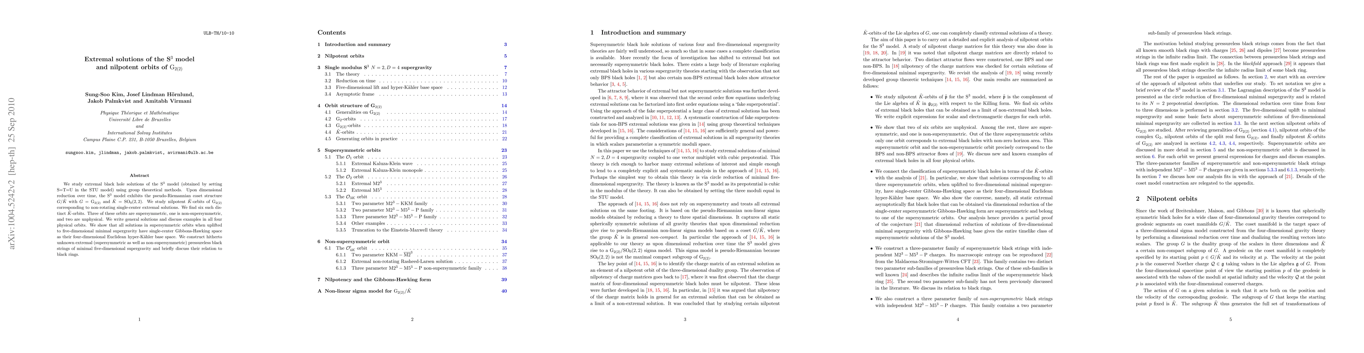 This paper investigates extremal black hole solutions in the S3 model using group theory, identifying six distinct nilpotent K-orbits of G2(2). It finds three supersymmetric, one non-supersymmetric, and two unphysical orbits, and demonstrates that supersymmetric solutions uplift to five-dimensional minimal supergravity with a four-dimensional Euclidean hyper-Kähler base space.