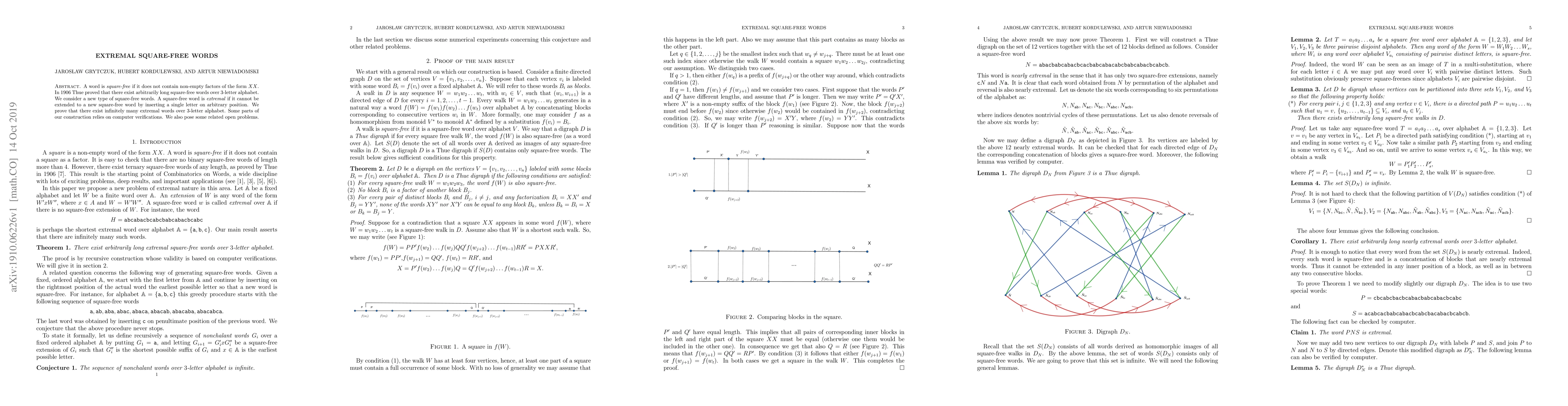 This paper explores extremal square-free words, which are square-free words that cannot be extended to remain square-free by inserting a single letter. The authors prove the existence of infinitely many such extremal words over a 3-letter alphabet and utilize computer verifications in their construction. They also propose several open problems related to this topic.