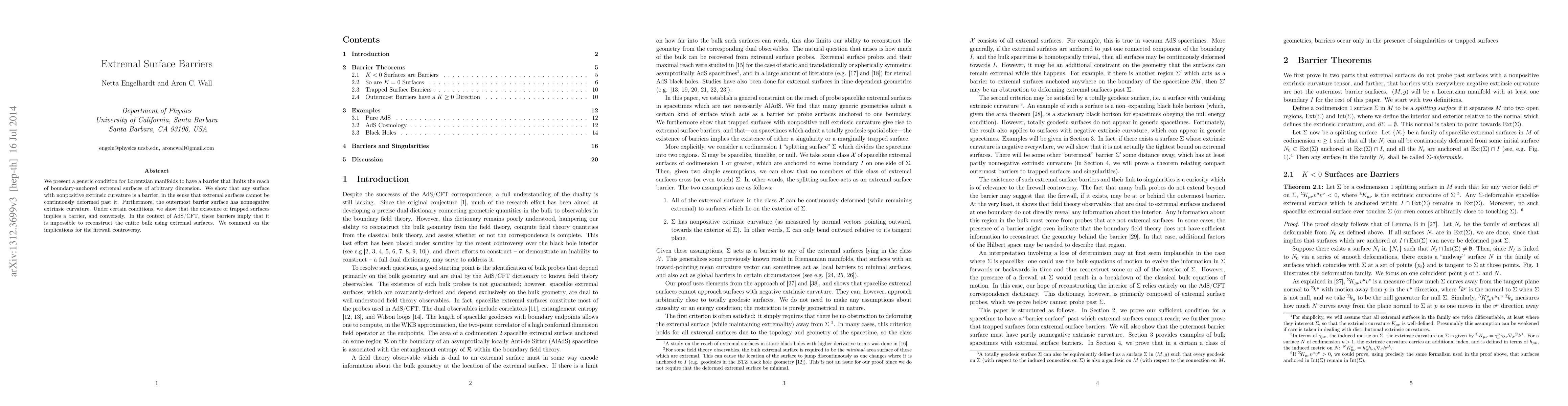 We present a generic condition for Lorentzian manifolds to have a barrier that limits the reach of boundary-anchored extremal surfaces of arbitrary dimension. We show that any surface with nonpositive extrinsic curvature is a barrier, in the sense that extremal surfaces cannot be continuously deformed past it. Furthermore, the outermost barrier surface has nonnegative extrinsic curvature. Under certain conditions, we show that the existence of trapped surfaces implies a barrier, and conversely. In the context of AdS/CFT, these barriers imply that it is impossible to reconstruct the entire bulk using extremal surfaces. We comment on the implications for the firewall controversy.