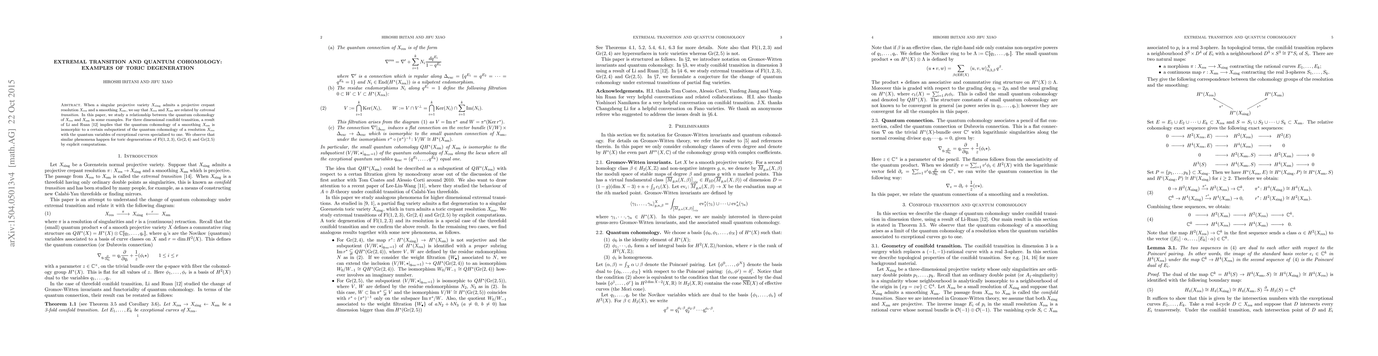 Researchers studied a relationship between quantum cohomology of smooth and resolution varieties in 3D conifold transitions and found similar patterns in toric degenerations of Fl(1,2,3), Gr(2,4) and Gr(2,5).