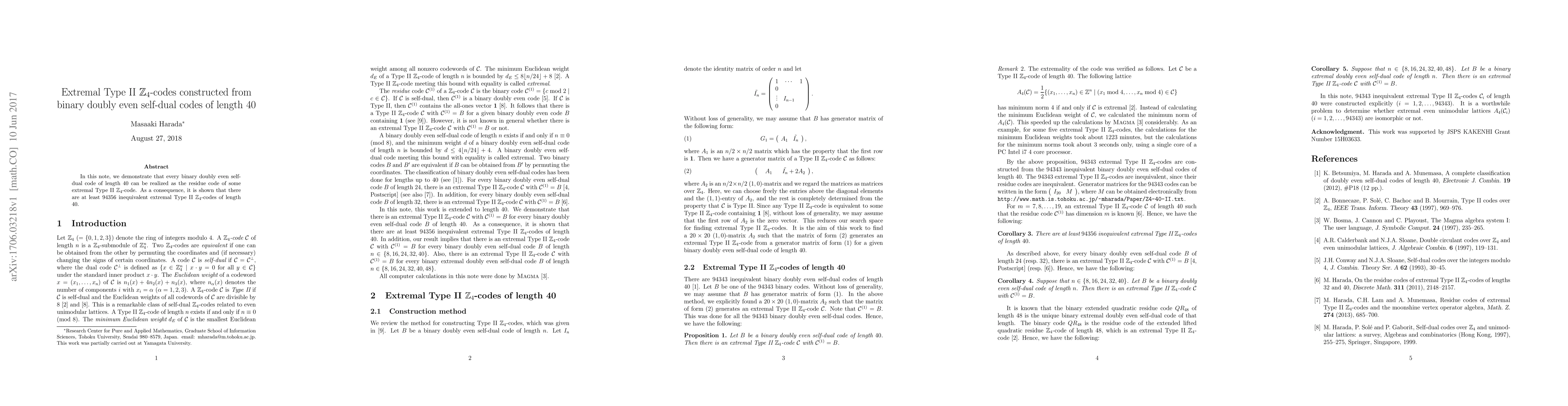 This research demonstrates that binary doubly even self-dual codes of length 40 can be viewed as residue codes of extremal Type II $\mathbb{Z}_4$-codes, resulting in at least 94356 inequivalent extremal Type II $\mathbb{Z}_4$-codes of length 40.