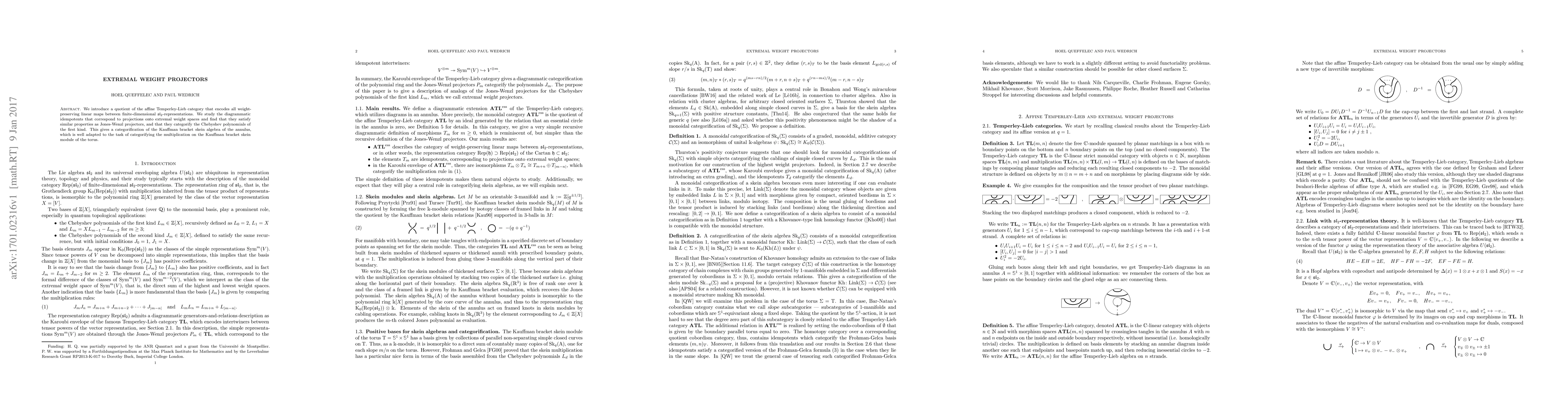 We introduce a quotient of the affine Temperley-Lieb category that encodes all weight-preserving linear maps between finite-dimensional sl(2)-representations. We study the diagrammatic idempotents that correspond to projections onto extremal weight spaces and find that they satisfy similar properties as Jones-Wenzl projectors, and that they categorify the Chebyshev polynomials of the first kind. This gives a categorification of the Kauffman bracket skein algebra of the annulus, which is well adapted to the task of categorifying the multiplication on the Kauffman bracket skein module of the torus.