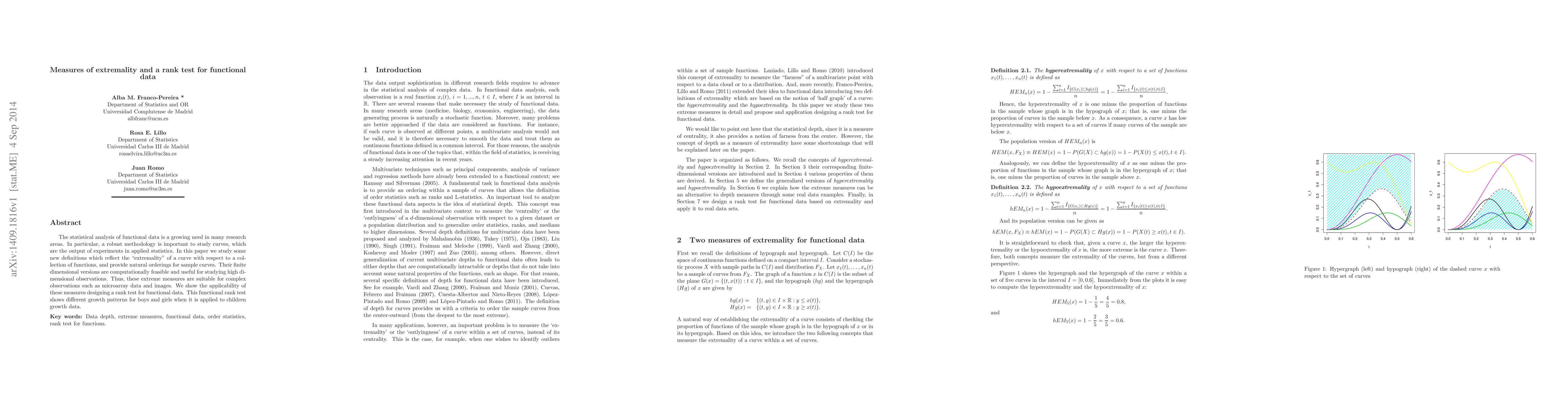 This paper introduces new definitions for "extremality" measures in functional data analysis, providing a rank test for ordering sample curves. These measures are applied to complex datasets like microarray data and images, demonstrating the test's effectiveness in revealing growth patterns in children's data.