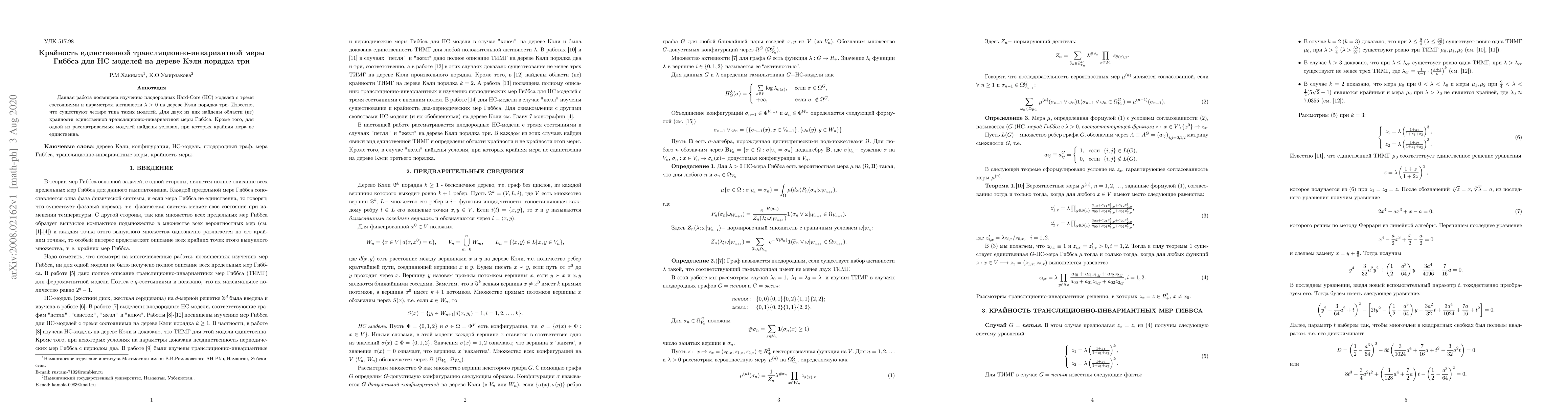 Researchers studied a type of statistical model called hard core models on a Cayley tree with three states. They found that in two types of these models, the regions where the unique translation-invariant Gibbs measure is most stable have been identified.