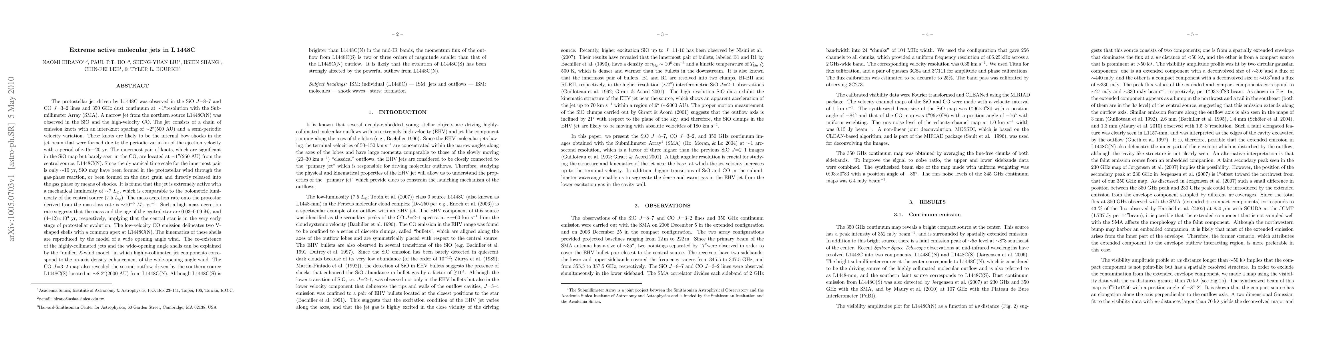 Observations of L1448C reveal an extremely active molecular jet with a high mass accretion rate, suggesting the central star is in its early protostellar evolution phase.