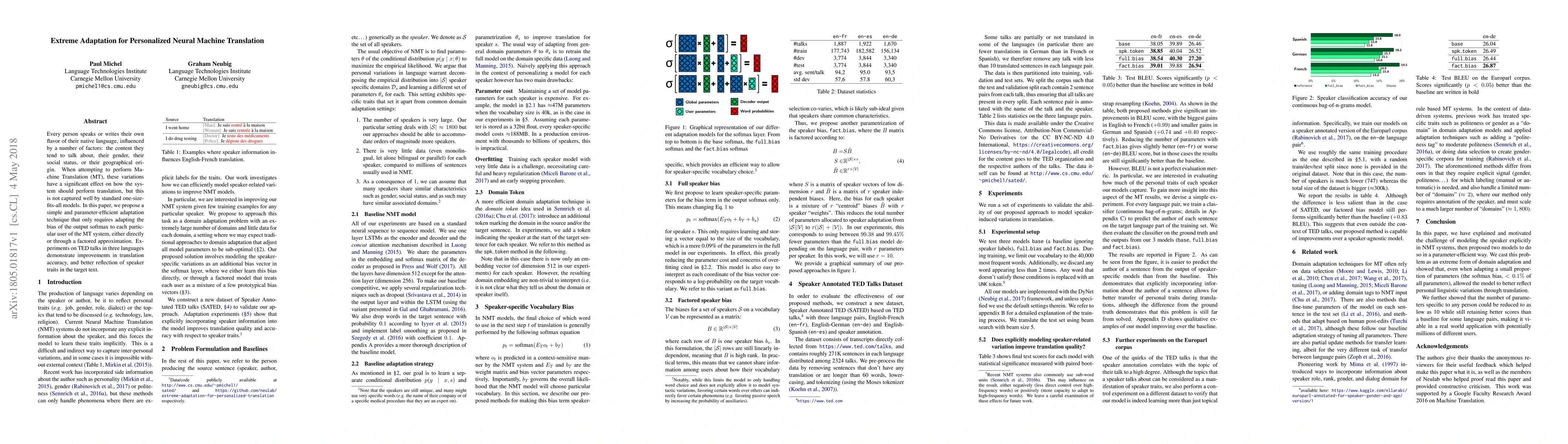 Researchers developed an adaptation technique for machine translation that improves accuracy by accounting for individual user traits, such as language flavor, gender, and social status, without requiring significant model updates.