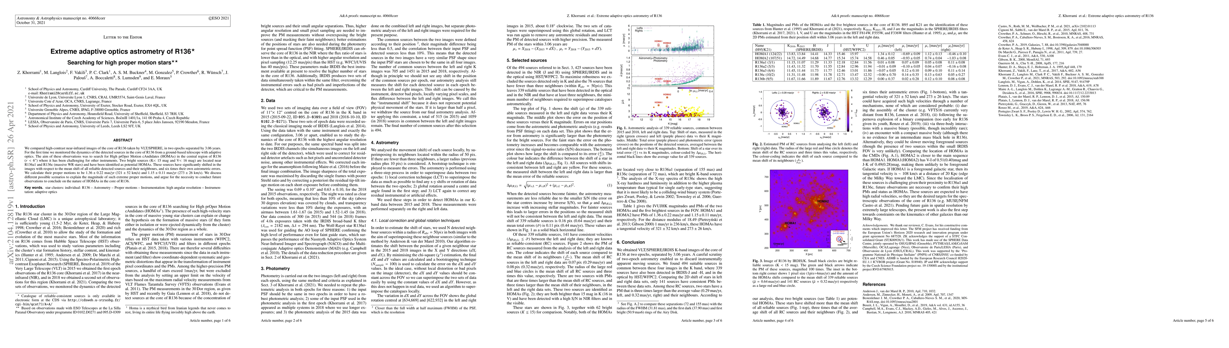 We compared high-contrast near-infrared images of the core of R136 taken by VLT/SPHERE, in two epochs separated by 3.06 years. For the first time we monitored the dynamics of the detected sources in the core of R136 from a ground-based telescope with adaptive optics. The aim of these observations was to search for High prOper Motion cAndidates (HOMAs) in the central region of R136 (r<6") where it has been challenging for other instruments. Two bright sources (K<15mag and V<16mag) are located near R136a1 and R136c (massive WR stars) and have been identified as potential HOMAs. These sources have significantly shifted in the images with respect to the mean shift of all reliable detected sources and their neighbours, and six times their own astrometric errors. We calculate their proper motions to be 1.36\pm0.22 mas/yr (321\pm52 km/s) and 1.15\pm0.11 mas/yr (273\pm26 km/s). We discuss different possible scenarios to explain the magnitude of such extreme proper motions, and argue for the necessity to conduct future observations to conclude on the nature of HOMAs in the core of R136.