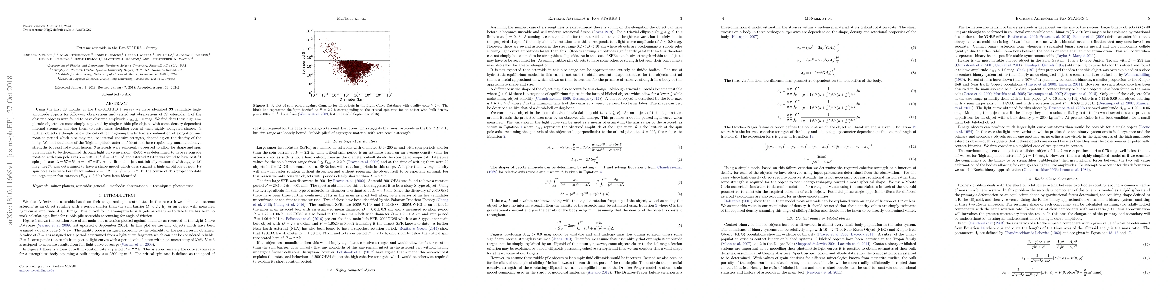 Using the first 18 months of the Pan-STARRS 1 survey we have identified 33 candidate high-amplitude objects for follow-up observations and carried out observations of 22 asteroids. 4 of the observed objects were found to have observed amplitude $A_{obs}\geq 1.0$ mag. We find that these high amplitude objects are most simply explained by single rubble pile objects with some density-dependent internal strength, allowing them to resist mass shedding even at their highly elongated shapes. 3 further objects although below the cut-off for 'high-amplitude' had a combination of elongation and rotation period which also may require internal cohesive strength, depending on the density of the body. We find that none of the 'high-amplitude asteroids' identified here require any unusual cohesive strengths to resist rotational fission. 3 asteroids were sufficiently observed to allow for shape and spin pole models to be determined through light curve inversion. 45864 was determined to have retrograde rotation with spin pole axes $\lambda=218\pm 10^{\circ}, \beta=-82\pm 5^{\circ}$ and asteroid 206167 was found to have best fit spin pole axes $\lambda= 57 \pm 5^{\circ}$, $\beta=-67 \pm 5^{\circ}$. An additional object not initially measured with $A_{obs}>1.0$ mag, 49257, was determined to have a shape model which does suggest a high-amplitude object. Its spin pole axes were best fit for values $\lambda=112\pm 6^{\circ}, \beta=6\pm 5^{\circ}$. In the course of this project to date no large super-fast rotators ($P_{rot} < 2.2$ h) have been identified.