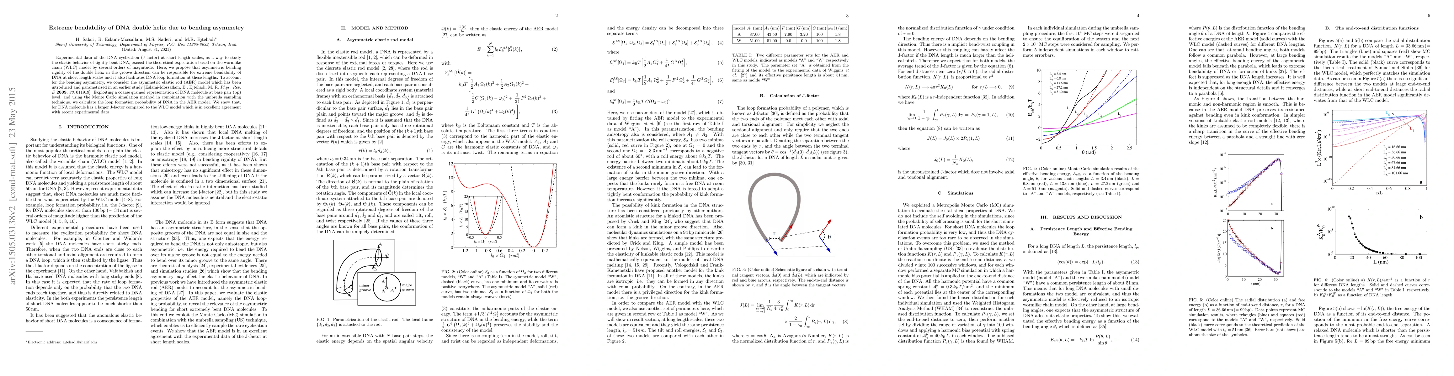 This paper demonstrates that DNA's extreme bendability at short length scales is due to its asymmetric bending rigidity, proposing an asymmetric elastic rod model that better explains experimental observations than the traditional wormlike chain model. The study uses Monte Carlo simulations to show DNA's higher loop formation probability in the new model, aligning with recent experimental data.