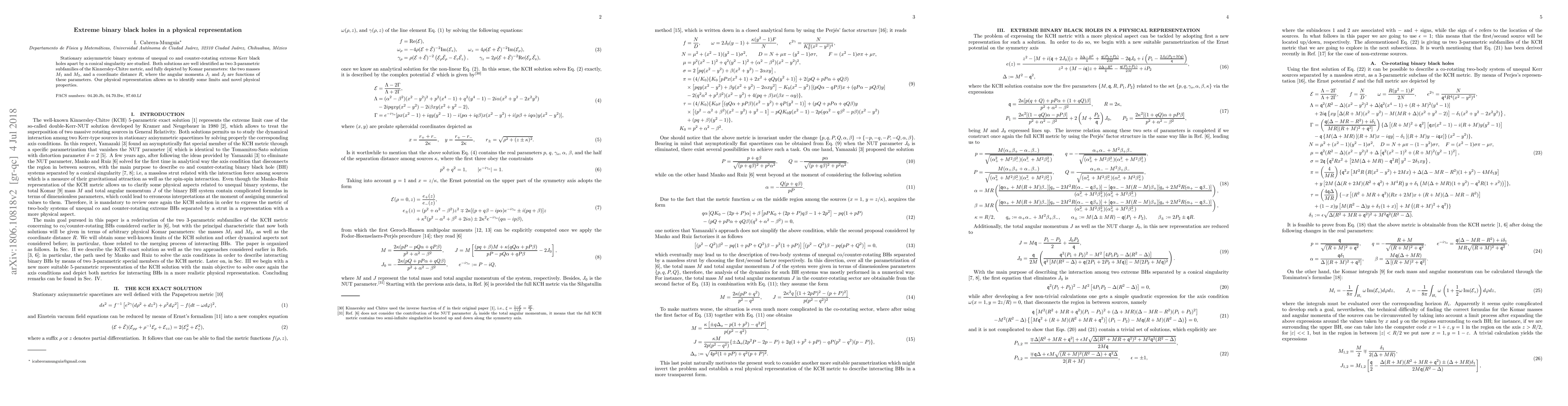 The paper examines stationary axisymmetric binary systems of unequal, co- and counter-rotating extreme Kerr black holes separated by a conical singularity. It identifies these solutions as two 3-parameter subfamilies of the Kinnersley-Chitre metric, using Komar parameters for full depiction. The research reveals limits and novel physical properties of such extreme binary black hole systems.