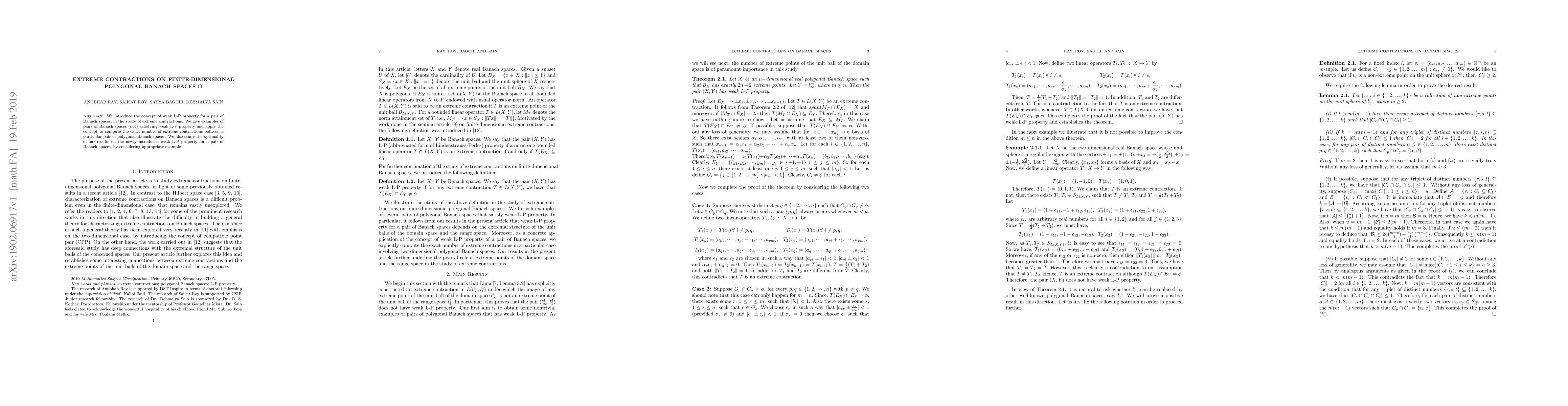 This paper introduces the weak L-P property for Banach spaces and applies it to determine the exact number of extreme contractions between specific polygonal Banach spaces. It also examines the optimality of these results through relevant examples.