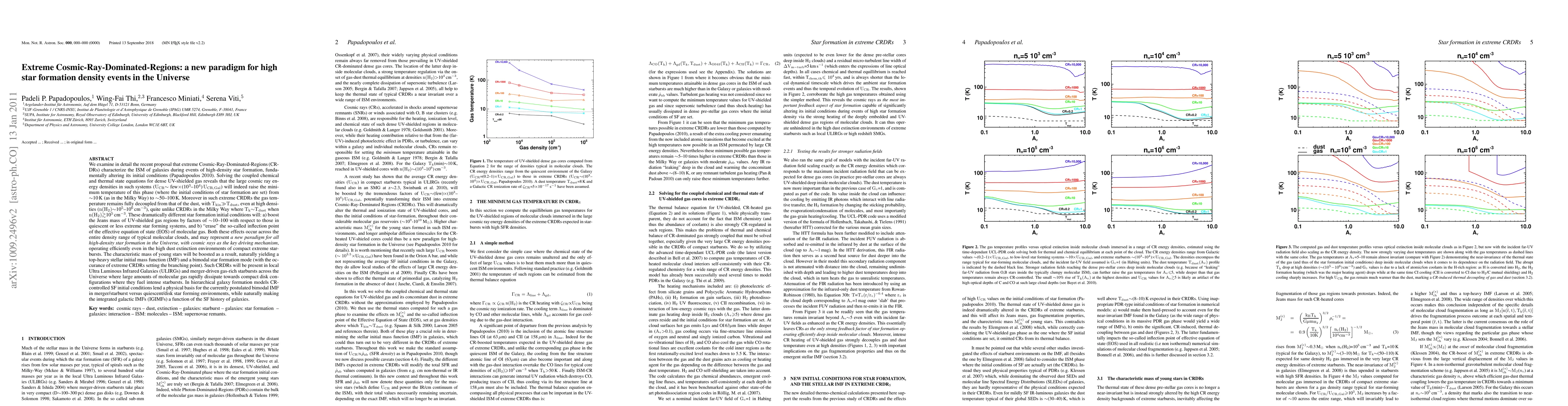 We examine in detail the recent proposal that extreme Cosmic-Ray-Dominated-Regions (CRDRs) characterize the ISM of galaxies during events of high-density star formation, fundamentally altering its initial conditions (Papadopoulos 2010). Solving the coupled chemical and thermal state equations for dense UV-shielded gas reveals that the large cosmic ray energy densities in such systems (U_{CR} (few)x(10^3-10^4) U_{CR,Gal}) will indeed raise the minimum temperature of this phase (where the initial conditions of star formation are set) from ~10K (as in the Milky Way) to (50-100)K. Moreover in such extreme CRDRs the gas temperature remains fully decoupled from that of the dust, with T_{kin} >> T_{dust}, even at high densities (n(H_2)~10^5--10^6 cm^{-3}), quite unlike CRDRs in the Milky Way where T_k T_{dust} when n(H_2) >= 10^5 cm^{-3}. These dramatically different star formation initial conditions will: a) boost the Jeans mass of UV-shielded gas regions by factors of ~10--100 with respect to those in quiescent or less extreme star forming systems, and b) "erase" the so-called inflection point of the effective equation of state (EOS) of molecular gas. Both these effects occur across the entire density range of typical molecular clouds, and may represent {\it a new paradigm for all high-density star formation in the Universe}, with cosmic rays as the key driving mechanism, operating efficiently even in the high dust extinction environments of extreme starbursts...
