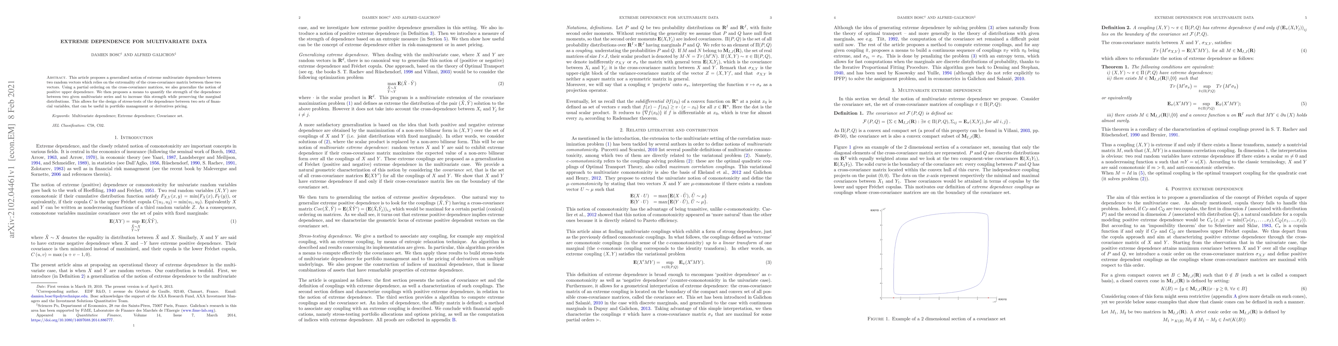 This paper introduces a generalized concept of extreme multivariate dependence based on the extremality of cross-covariance matrices, extending the notion of positive upper dependence. It proposes a method to quantify and enhance such dependence while preserving marginal distributions, useful for stress-testing financial variables in portfolio management and derivatives pricing.
