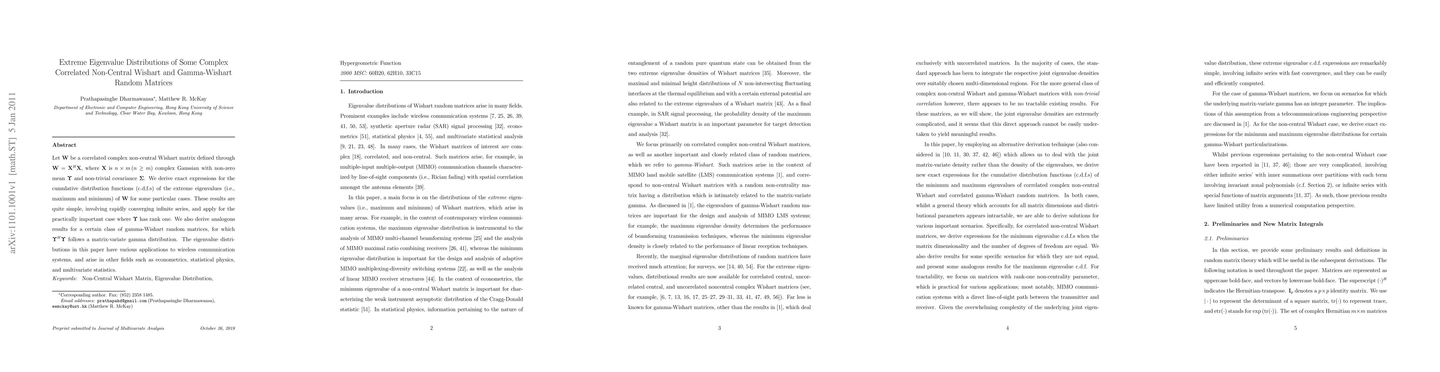 This paper derives exact expressions for the cumulative distribution functions of extreme eigenvalues of complex correlated non-central Wishart and gamma-Wishart random matrices, with applications to wireless communication systems and other fields. The results involve simple, rapidly converging infinite series, particularly for rank-one mean cases.