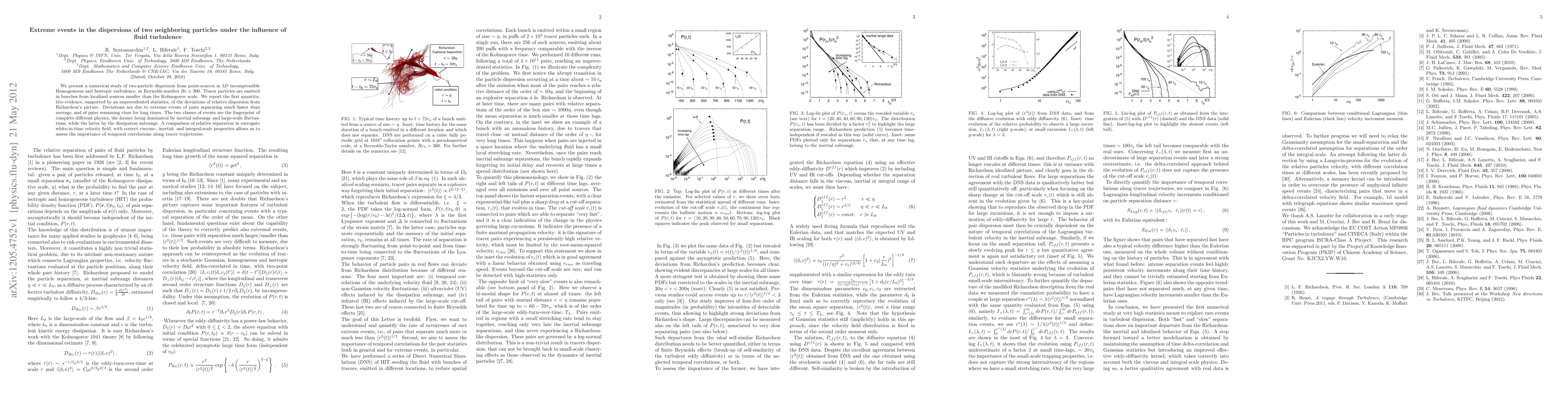 We present a numerical study of two-particle dispersion from point-sources in 3D incompressible Homogeneous and Isotropic turbulence, at Reynolds number Re \simeq 300. Tracer particles are emitted in bunches from localized sources smaller than the Kolmogorov scale. We report the first quantitative evidence, supported by an unprecedented statistics, of the deviations of relative dispersion from Richardson's picture. Deviations are due to extreme events of pairs separating much faster than average, and of pairs remaining close for long times. The two classes of events are the fingerprint of complete different physics, the former being dominated by inertial subrange and large-scale fluctuations, while the latter by the dissipation subrange. A comparison of relative separation in surrogate white-in-time velocity field, with correct viscous-, inertial- and integral-scale properties allows us to assess the importance of temporal correlations along tracer trajectories.