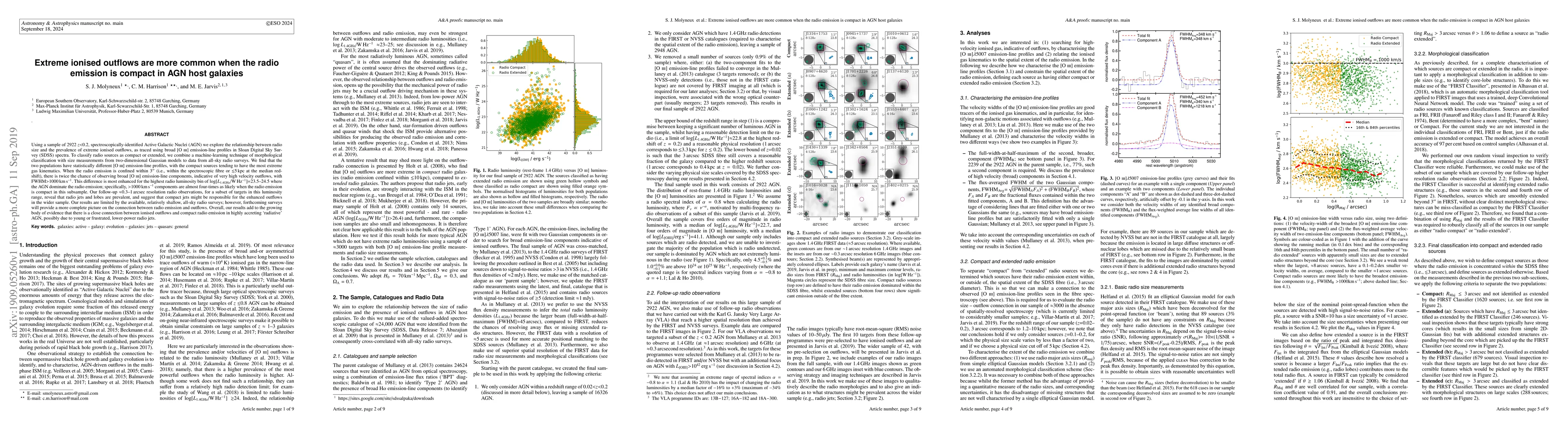 This study finds that extreme ionised outflows in AGN host galaxies are more prevalent when the radio emission is compact, as indicated by broad [O III] emission-line profiles. Compact radio sources show significantly higher likelihood of high-velocity outflows, especially in the highest radio luminosity AGN, suggesting a link to young or frustrated radio jets.