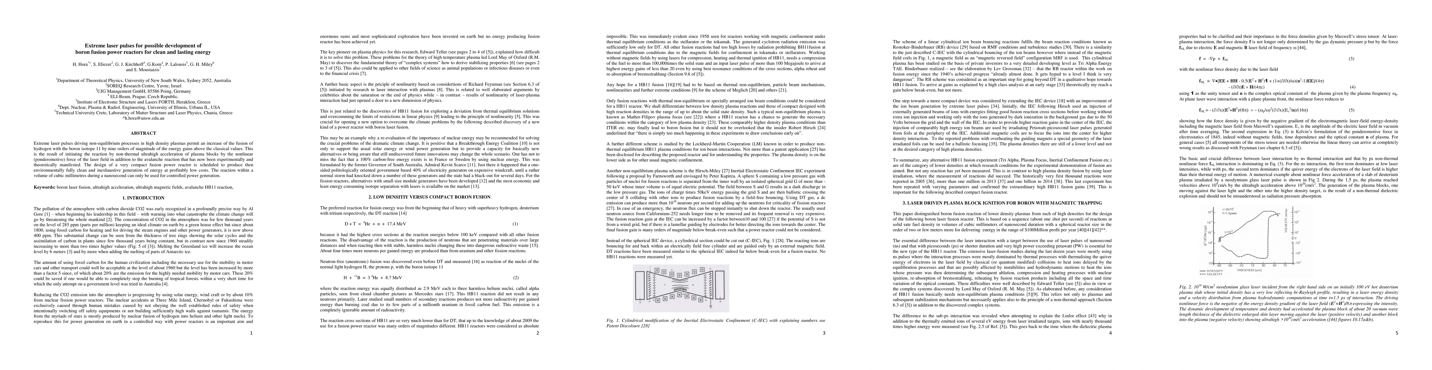This paper explores the use of extreme laser pulses to significantly enhance boron fusion reactions, achieving energy gains nine orders of magnitude higher than classical methods. The proposed compact fusion reactor aims to produce clean, inexhaustible energy at low costs through controlled nanosecond reactions in high-density plasmas.