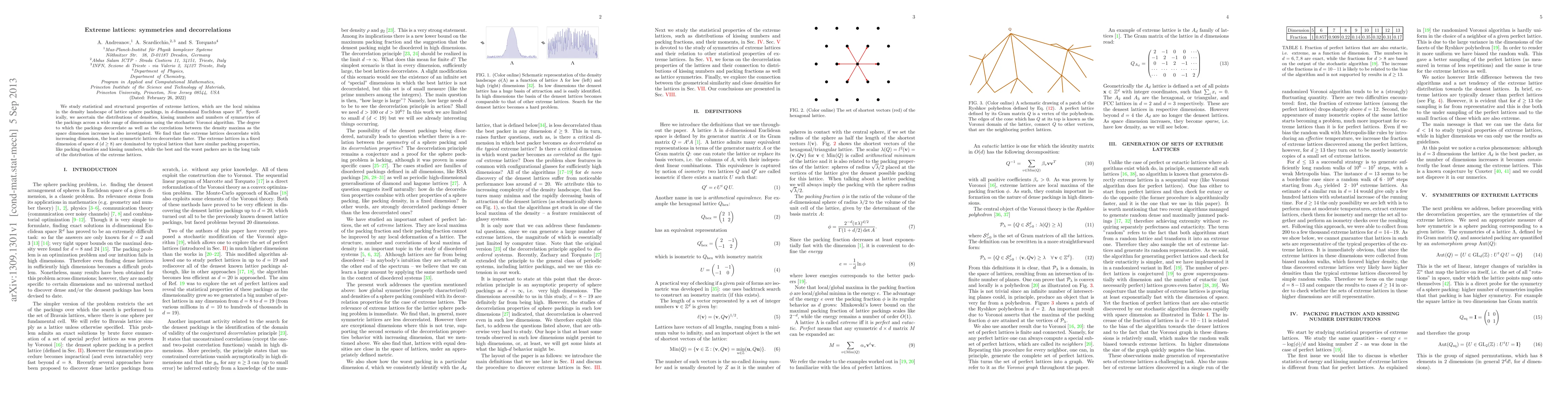 We study statistical and structural properties of extreme lattices, which are the local minima in the density landscape of lattice sphere packings, in $d$-dimensional Euclidean space $\mathbb{R}^d$. Specifically, we ascertain the distributions of densities, kissing numbers and numbers of symmetries of the packings across a wide range of dimensions using the stochastic Voronoi algorithm. The degree to which the packings decorrelate as well as the correlations between the density maxima as the space dimension increases is also investigated. We find that the extreme lattices decorrelate with increasing dimension, the least symmetric lattices decorrelate faster. The extreme lattices in a fixed dimension of space $d$ ($d\geq 8$) are dominated by typical lattices that have similar packing properties, like packing densities and kissing numbers, while the best and the worst packers are in the long tails of the distribution of the extreme lattices.