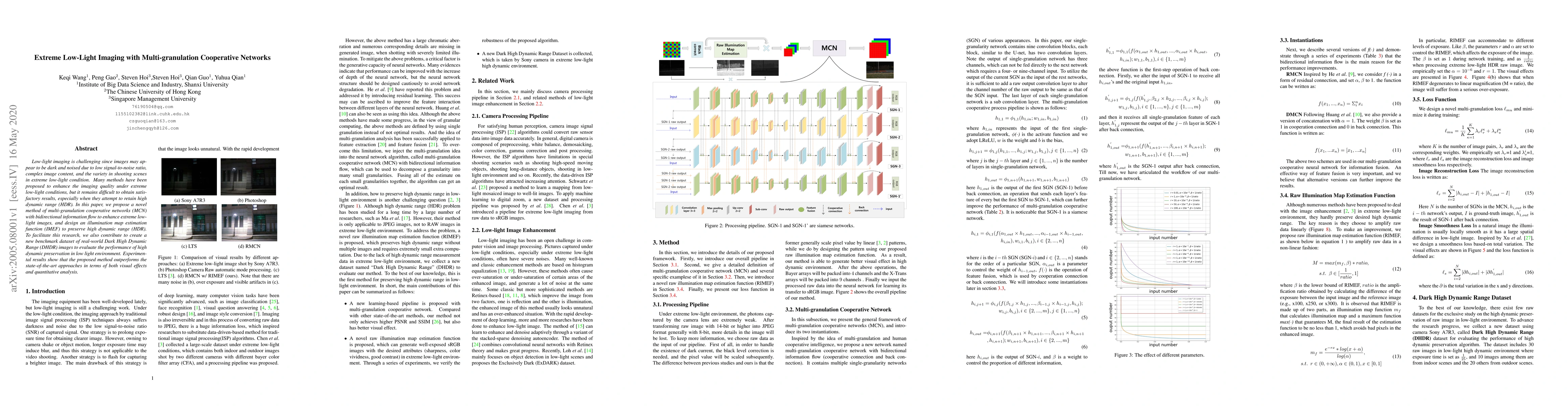 Low-light imaging is challenging since images may appear to be dark and noised due to low signal-to-noise ratio, complex image content, and the variety in shooting scenes in extreme low-light condition. Many methods have been proposed to enhance the imaging quality under extreme low-light conditions, but it remains difficult to obtain satisfactory results, especially when they attempt to retain high dynamic range (HDR). In this paper, we propose a novel method of multi-granulation cooperative networks (MCN) with bidirectional information flow to enhance extreme low-light images, and design an illumination map estimation function (IMEF) to preserve high dynamic range (HDR). To facilitate this research, we also contribute to create a new benchmark dataset of real-world Dark High Dynamic Range (DHDR) images to evaluate the performance of high dynamic preservation in low light environment. Experimental results show that the proposed method outperforms the state-of-the-art approaches in terms of both visual effects and quantitative analysis.