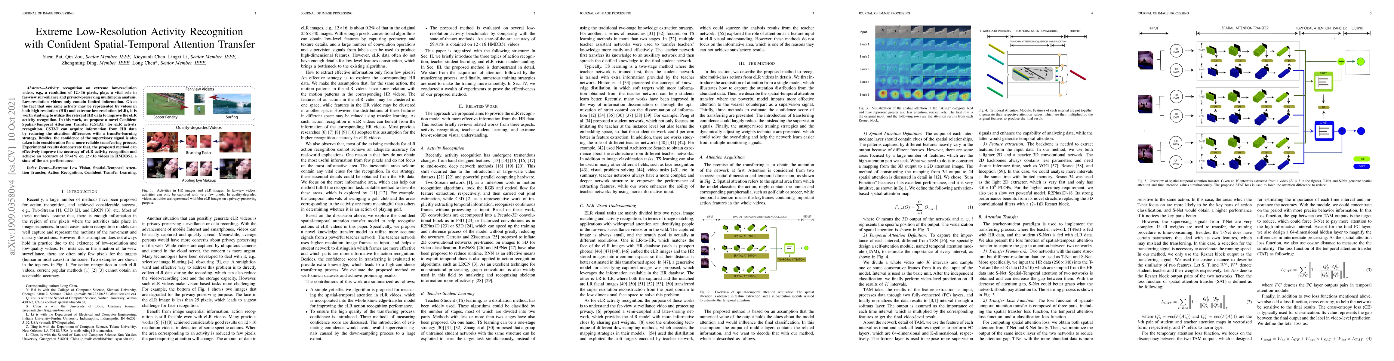 This paper proposes a Confident Spatial-Temporal Attention Transfer (CSTAT) method to enhance activity recognition in extreme low-resolution videos by leveraging high-resolution data. The method achieves state-of-the-art accuracy of 59.23% on 12*16 pixel videos in the HMDB51 dataset.