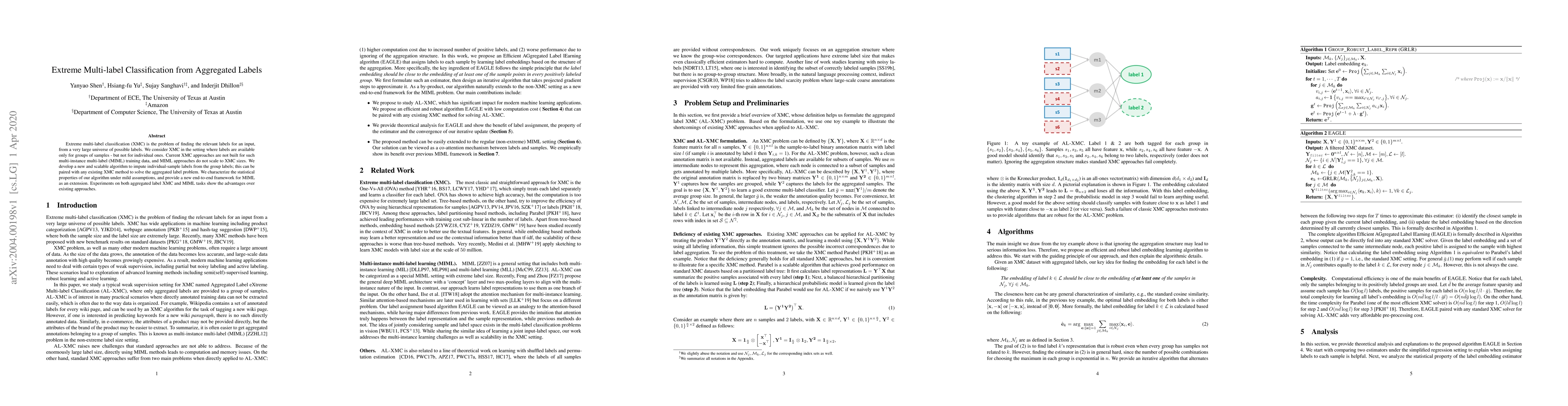 This paper introduces a new algorithm to solve extreme multi-label classification from aggregated labels, improving scalability and accuracy for large datasets.
