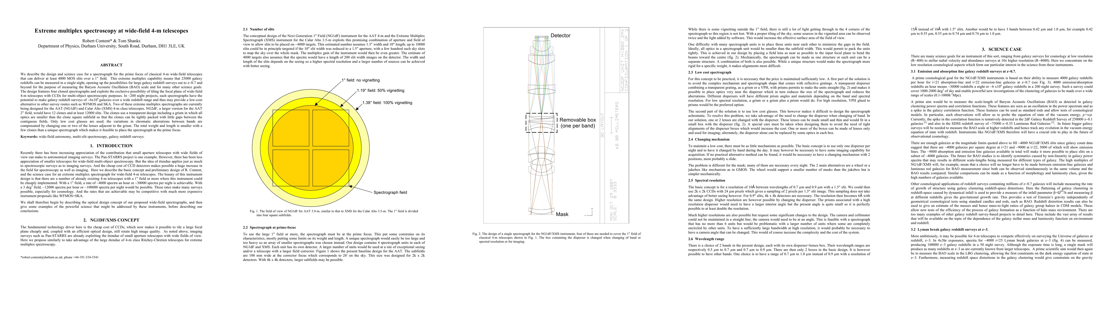 We describe the design and science case for a spectrograph for the prime focus of classical 4-m wide-field telescopes that can deliver at least 4000 MOS slits over a 1 degree field. This extreme multiplex capability means that 25000 galaxy redshifts can be measured in a single night, opening up the possibilities for large galaxy redshift surveys out to z~0.7 and beyond for the purpose of measuring the Baryon Acoustic Oscillation (BAO) scale and for many other science goals. The design features four cloned spectrographs and exploits the exclusive possibility of tiling the focal plane of wide-field 4-m telescopes with CCDs for multi-object spectroscopic purposes. In ~200 night projects, such spectrographs have the potential to make galaxy redshift surveys of ~6 million galaxies over a wide redshift range and thus may provide a low-cost alternative to other survey routes such as WFMOS and SKA. Two of these extreme multiplex spectrographs are currently being designed for the AAT (NG1dF) and Calar Alto (XMS) 4-m class telescopes. NG2dF, a larger version for the AAT 2 degree field, would have 12 clones and at least 12000 slits. The clones use a transparent design including a grism in which all optics are smaller than the clone square subfield so that the clones can be tightly packed with little gaps between the contiguous fields. Only low cost glasses are used; the variations in chromatic aberrations between bands are compensated by changing one or two of the lenses adjacent to the grism. The total weight and length is smaller with a few clones than a unique spectrograph which makes it feasible to place the spectrograph at the prime focus.