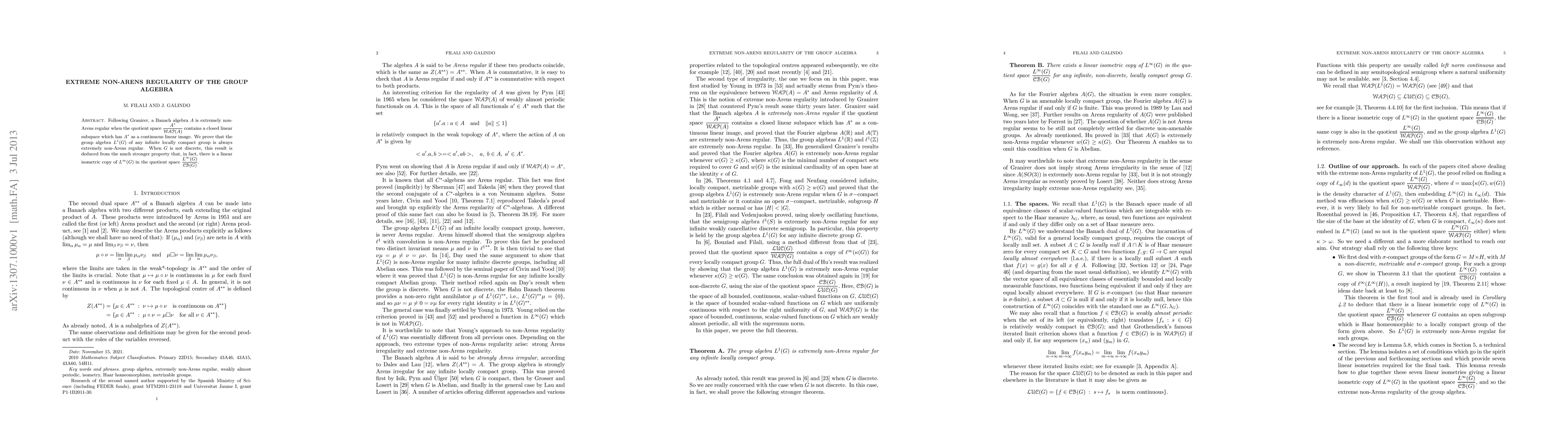 Following Granirer, a Banach algebra A is extremely non-Arens regular when the quotient space A*/WAP(A) contains a closed linear subspace which has A* as a continuous linear image. We prove that the group algebra L^1(G) of any infinite locally compact group is always extremely non-Arens regular. When G is not discrete, this result is deduced from the much stronger property that, in fact, there is a linear isometric copy of L^\infty(G) in the quotient space L^\infty(G)/CB(G), where CB(G) stands for the algebra of all continuous and bounded functions on G.
