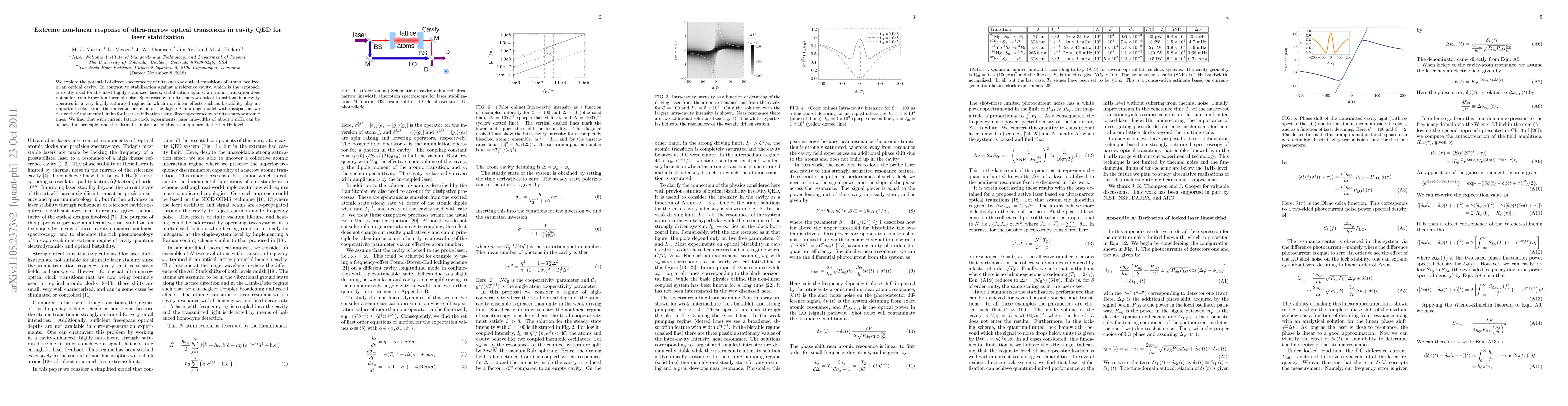 This paper investigates the use of ultra-narrow optical transitions in cavity QED for laser stabilization, proposing a method that avoids Brownian thermal noise by stabilizing against atomic transitions rather than reference cavities. It concludes that current lattice clock experiments can achieve laser linewidths of about 1 mHz, with ultimate limits at the 1 μHz level.