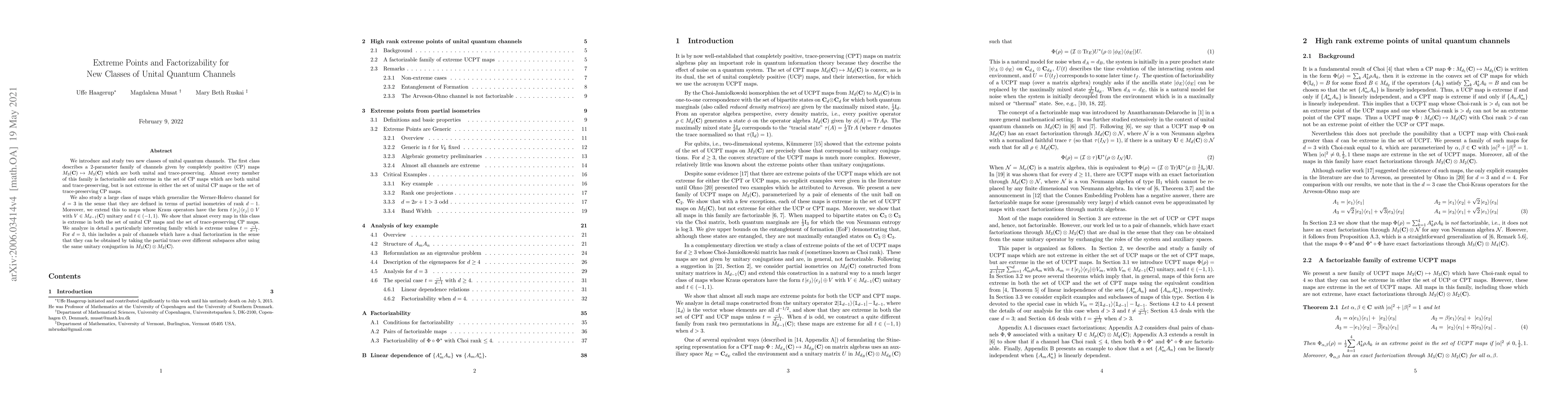 We introduce and study two new classes of unital quantum channels. The first class describes a 2-parameter family of channels given by completely positive (CP) maps $M_3({\bf C}) \mapsto M_3({\bf C})$ which are both unital and trace-preserving. Almost every member of this family is factorizable and extreme in the set of CP maps which are both unital and trace-preserving, but is not extreme in either the set of unital CP maps or the set of trace-preserving CP maps. We also study a large class of maps which generalize the Werner-Holevo channel for $d = 3$ in the sense that they are defined in terms of partial isometries of rank $d-1$. Moreover, we extend this to maps whose Kraus operators have the form $t |e_j \rangle \langle e_j | \oplus V $ with $V \in M_{d-1} ({\bf C}) $ unitary and $t \in (-1,1)$. We show that almost every map in this class is extreme in both the set of unital CP maps and the set of trace-preserving CP maps. We analyze in detail a particularly interesting subclass which is extreme unless $t = -1/(d-1)$. For $d = 3$, this includes a pair of channels which have a dual factorization in the sense that they can be obtained by taking the partial trace over different subspaces after using the same unitary conjugation in $M_3({\bf C}) \otimes M_3({\bf C})$.