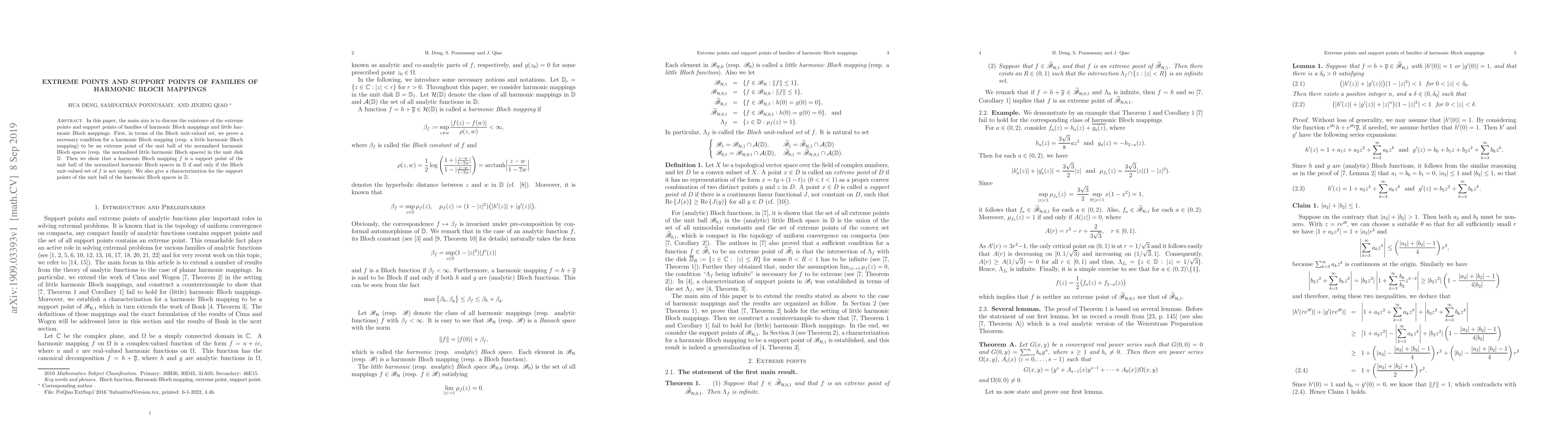 This paper investigates the existence of extreme and support points for families of harmonic and little harmonic Bloch mappings. It establishes necessary conditions for these mappings to be extreme points in their respective Bloch spaces and provides a characterization for support points in the normalized harmonic Bloch spaces within the unit disk $\mathbb{D}$.