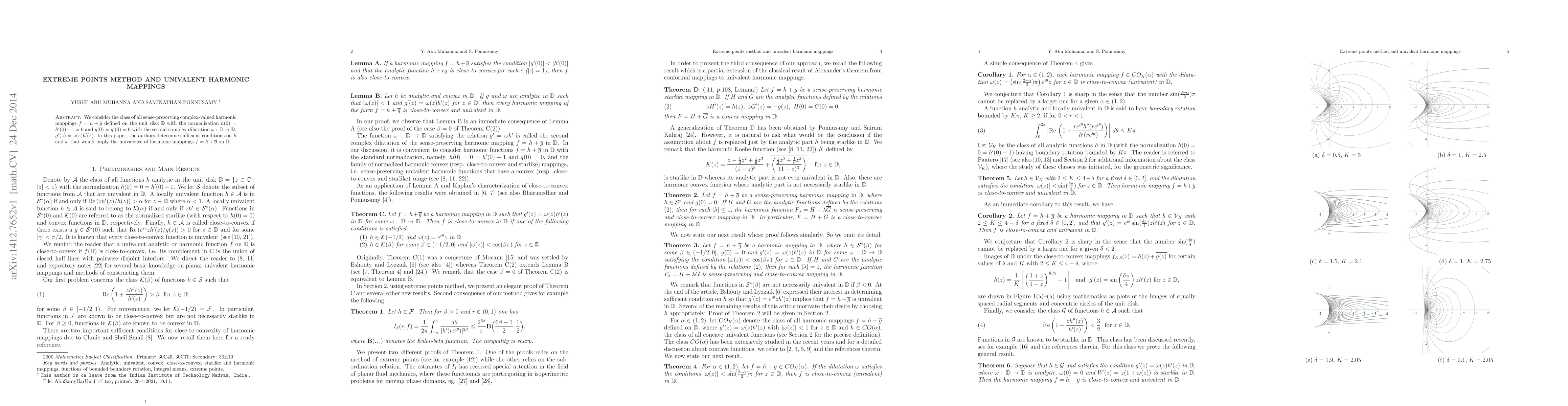 This paper investigates sufficient conditions for the univalence of sense-preserving harmonic mappings $f=h+\bar{g}$ on the unit disk, using the extreme points method and complex dilatation $\omega$. The authors establish criteria for $h$ and $\omega$ to ensure $f$ is univalent.