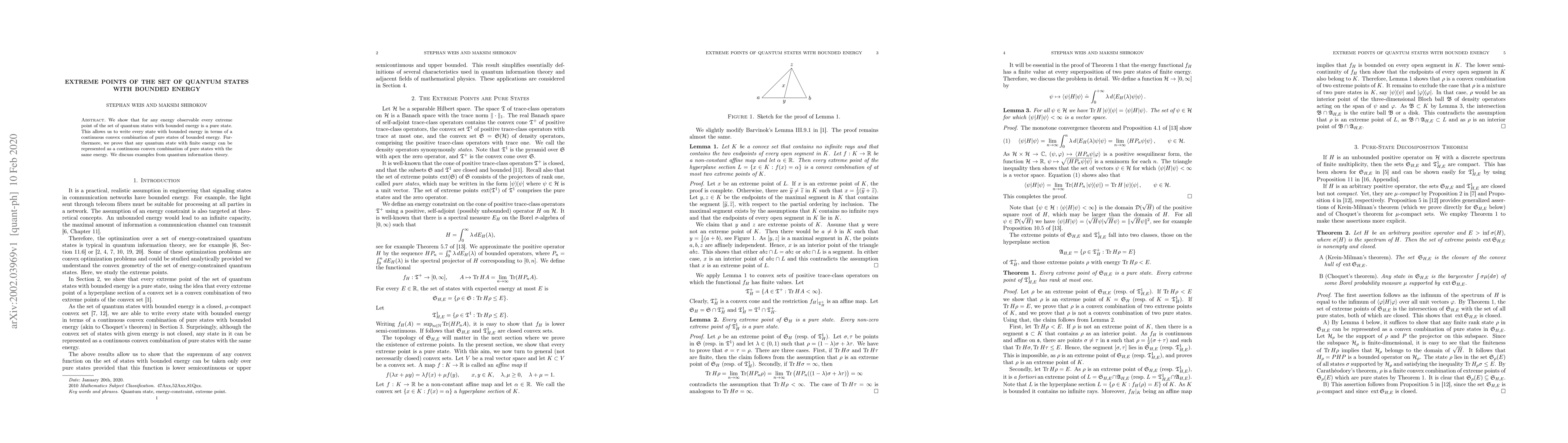 This paper demonstrates that any extreme point of the set of quantum states with bounded energy is a pure state, allowing any such state to be expressed as a continuous convex combination of pure states. It also proves the representation of any quantum state with finite energy as a convex combination of pure states with the same energy, with applications discussed in quantum information theory.