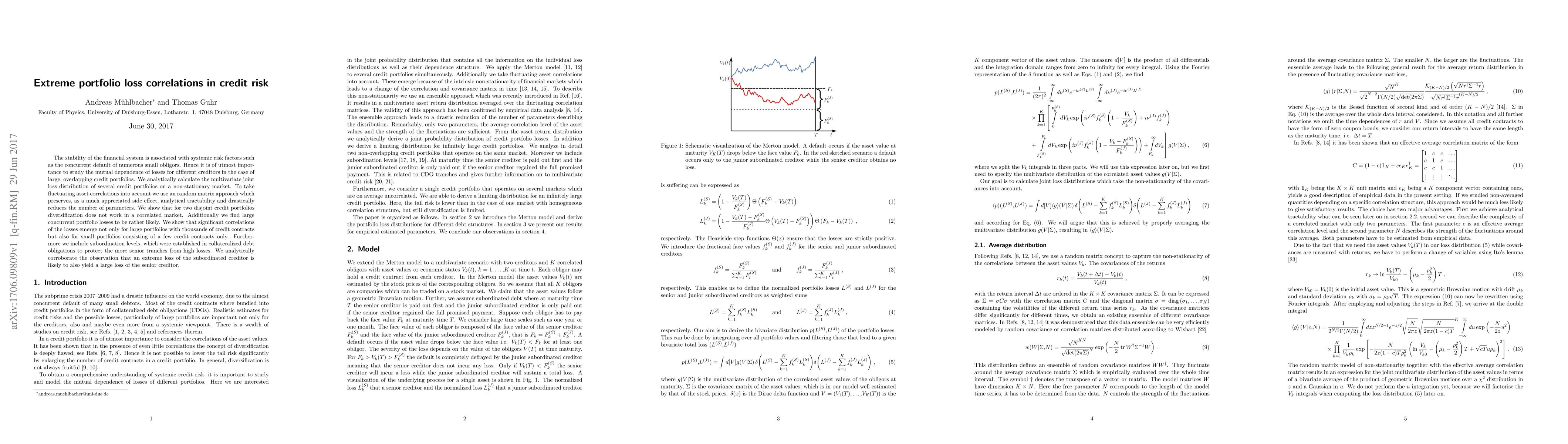 The stability of the financial system is associated with systemic risk factors such as the concurrent default of numerous small obligors. Hence it is of utmost importance to study the mutual dependence of losses for different creditors in the case of large, overlapping credit portfolios. We analytically calculate the multivariate joint loss distribution of several credit portfolios on a non-stationary market. To take fluctuating asset correlations into account we use an random matrix approach which preserves, as a much appreciated side effect, analytical tractability and drastically reduces the number of parameters. We show that for two disjoint credit portfolios diversification does not work in a correlated market. Additionally we find large concurrent portfolio losses to be rather likely. We show that significant correlations of the losses emerge not only for large portfolios with thousands of credit contracts but also for small portfolios consisting of a few credit contracts only. Furthermore we include subordination levels, which were established in collateralized debt obligations to protect the more senior tranches from high losses. We analytically corroborate the observation that an extreme loss of the subordinated creditor is likely to also yield a large loss of the senior creditor.