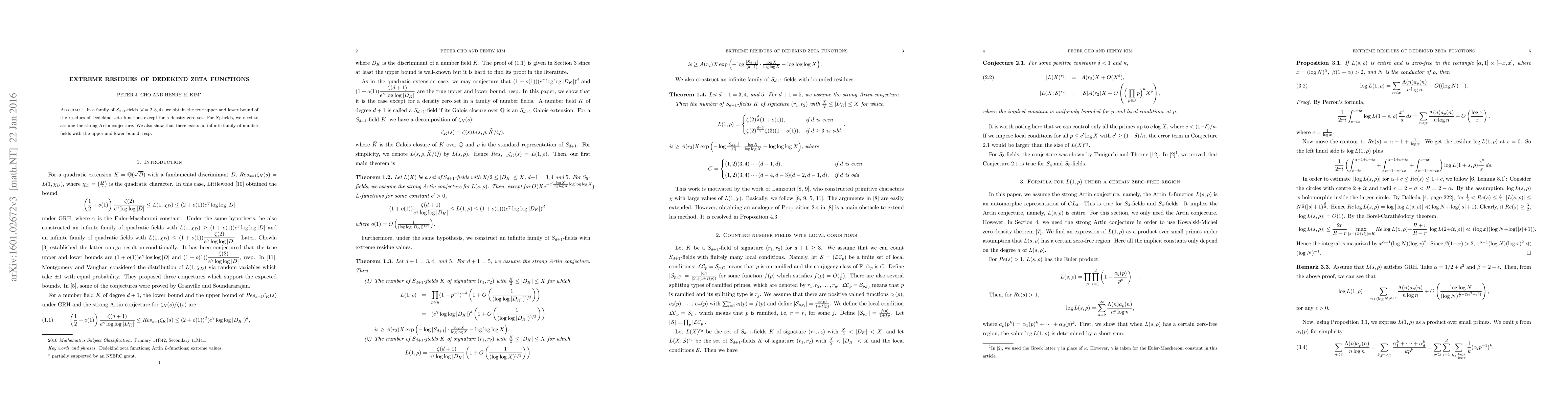 In a family of $S_{d+1}$-fields ($d=2,3,4$), we obtain the true upper and lower bound of the residues of Dedekind zeta functions except for a density zero set. For $S_5$-fields, we need to assume the strong Artin conjecture. We also show that there exists an infinite family of number fields with the upper and lower bound, resp.