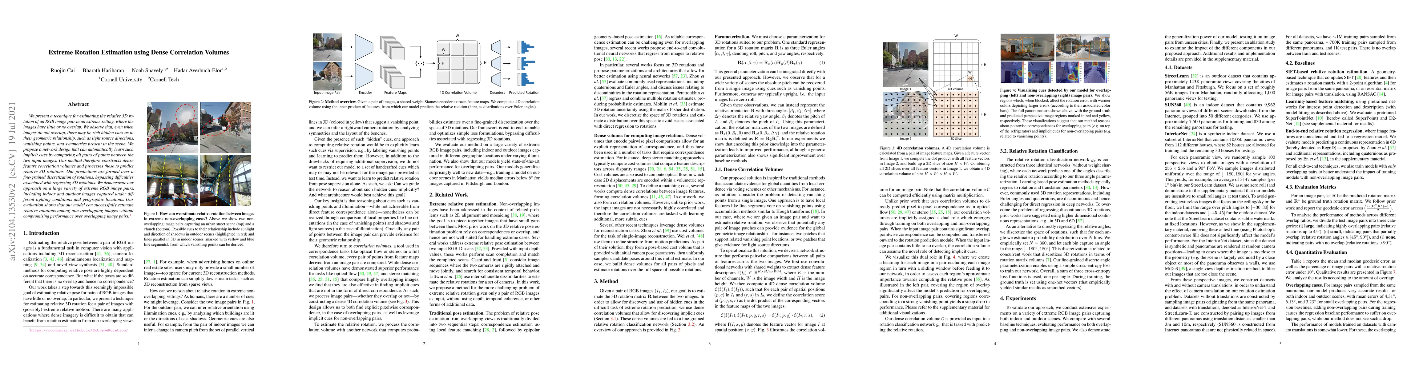 This paper introduces a novel network for estimating 3D rotations between non-overlapping RGB image pairs by leveraging implicit geometric cues. The method constructs dense correlation volumes and predicts fine-grained rotations, outperforming traditional regression-based approaches.