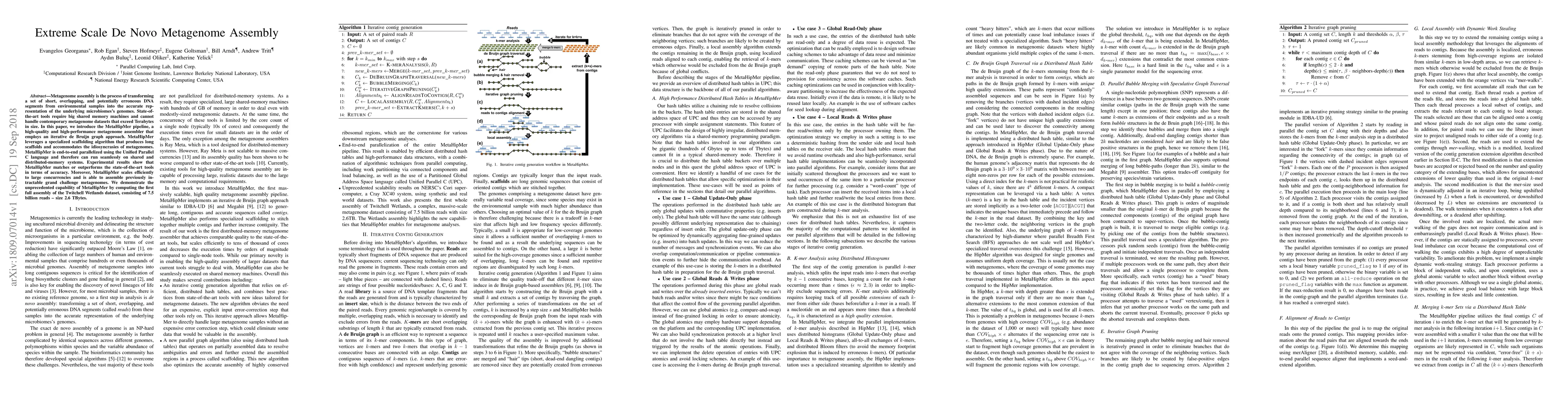 This paper presents MetaHipMer, a high-performance metagenome assembler that uses an iterative de Bruijn graph approach and a specialized scaffolding algorithm to handle large datasets. MetaHipMer efficiently scales to large concurrencies and outperforms existing tools, demonstrated by assembling the 2.6 TBytes Twitchell Wetlands dataset.