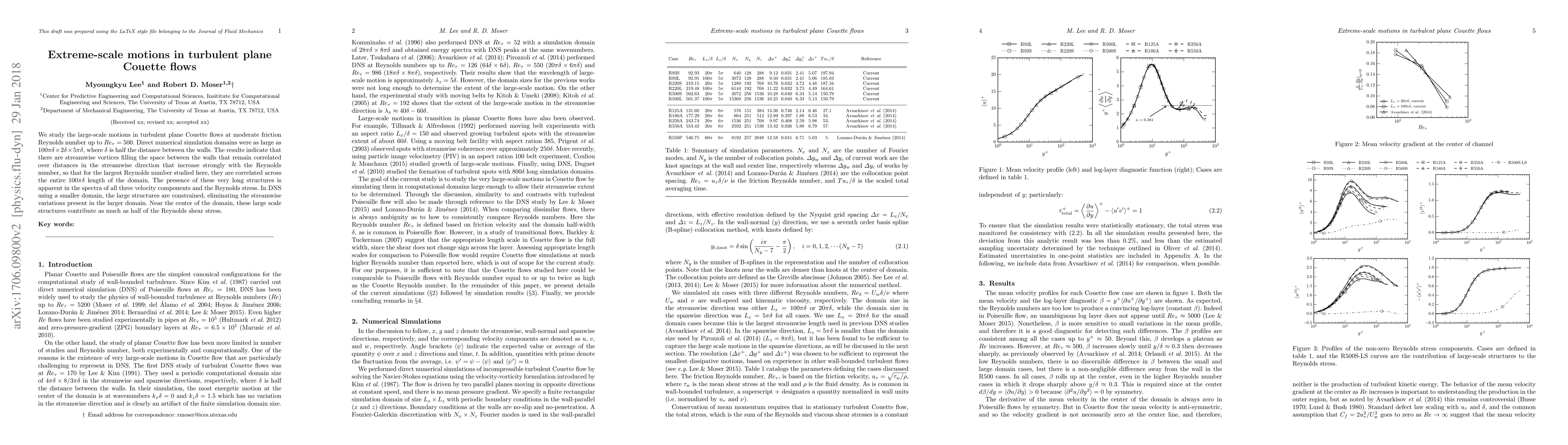 We study the size of large-scale motions in turbulent plane Couette flows at moderate Reynolds number up to $Re_\tau$ = 500. Direct numerical simulation domains were as large as $100\pi\delta\times2\delta\times5\pi\delta$, where $\delta$ is half the distance between the walls. The results indicate that there are structures with streamwise extent, as measured by the wavelength, as long as 78$\delta$ and at least 310$\delta$ at $Re_\tau$ = 220 and 500, respectively. The presence of these very long structures is apparent in the spectra of all three velocity components and the Reynolds stress. In DNS using a smaller domain, the large structures are constrained, eliminating the streamwise variations present in the larger domain. Effects of a smaller domain are also present in the mean velocity and the streamwise velocity variance in the outer flow.