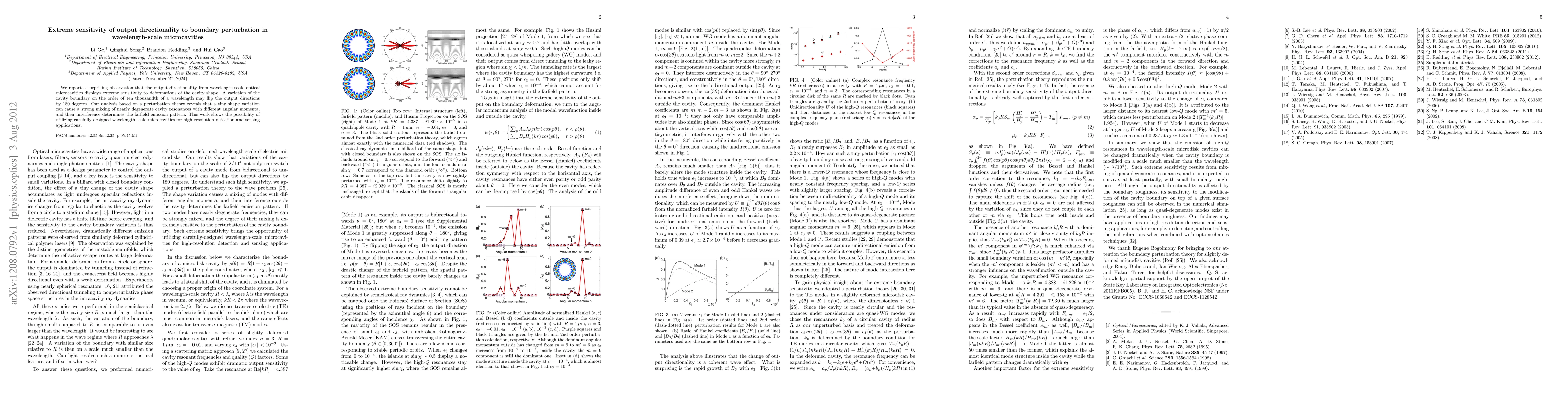 This paper reveals that slight deformations in the shape of wavelength-scale optical microcavities can drastically alter output directionality by up to 180 degrees. This extreme sensitivity is attributed to the interference of mixed cavity resonances due to boundary perturbations.