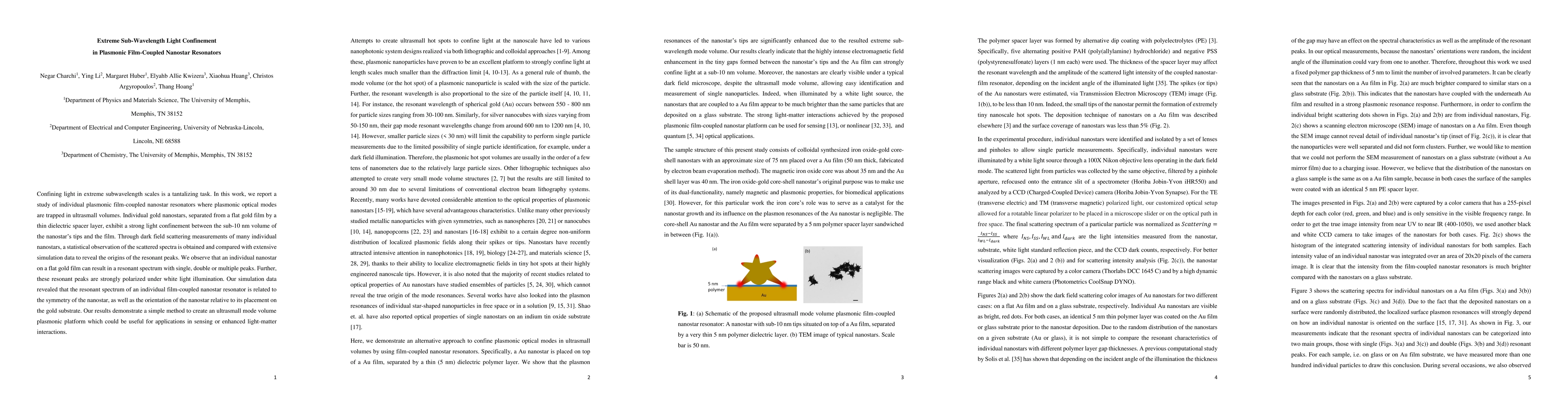 This paper investigates plasmonic film-coupled nanostar resonators that confine light to sub-10 nm volumes, achieving strong subwavelength light confinement. The study reveals that individual gold nanostars exhibit resonant spectra with single, double, or multiple peaks, which are influenced by the nanostar's symmetry and orientation on the gold substrate, potentially enabling applications in sensing and light-matter interaction enhancement.